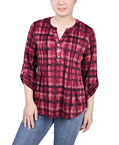 Petite 3/4 Roll Tab Sleeve Y-neck Top