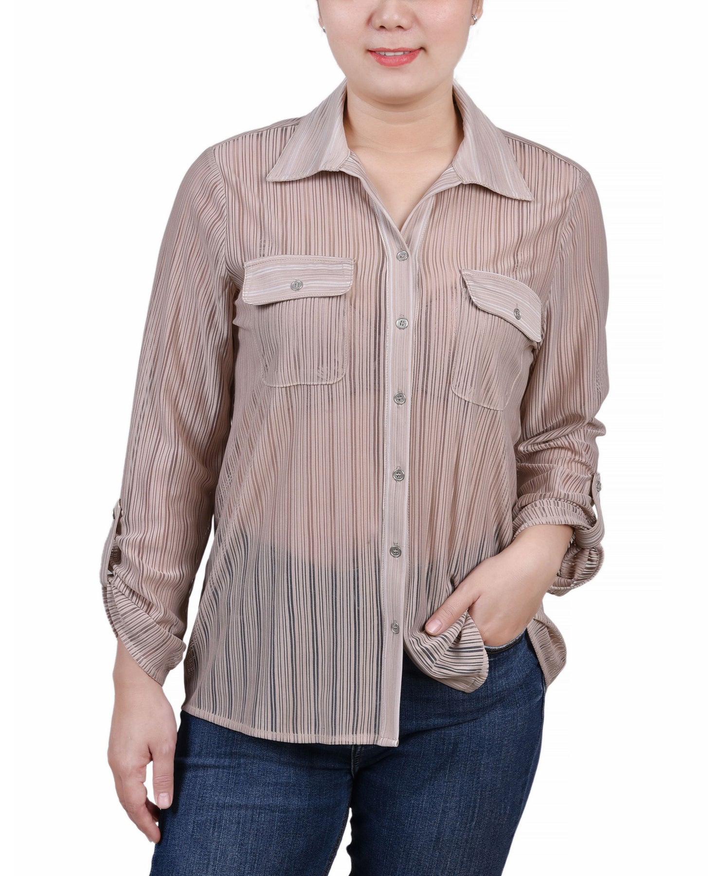 Petite Long Roll Tab Sleeve Burnout Knit Top