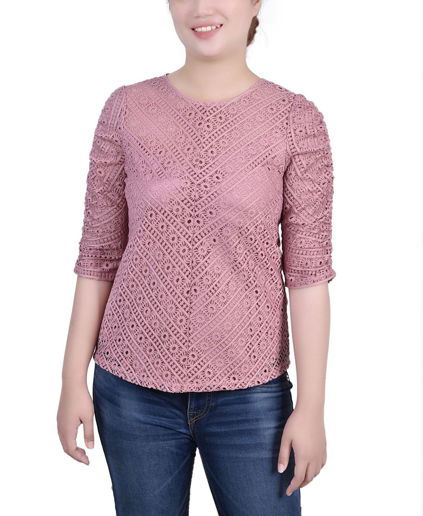 Petite Rouched Sleeve Lace Top