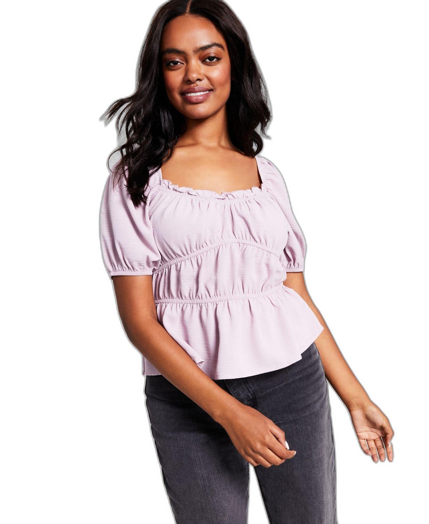 Women's Square-Neck Short-Puff-Sleeve Top Mauve Shadows S