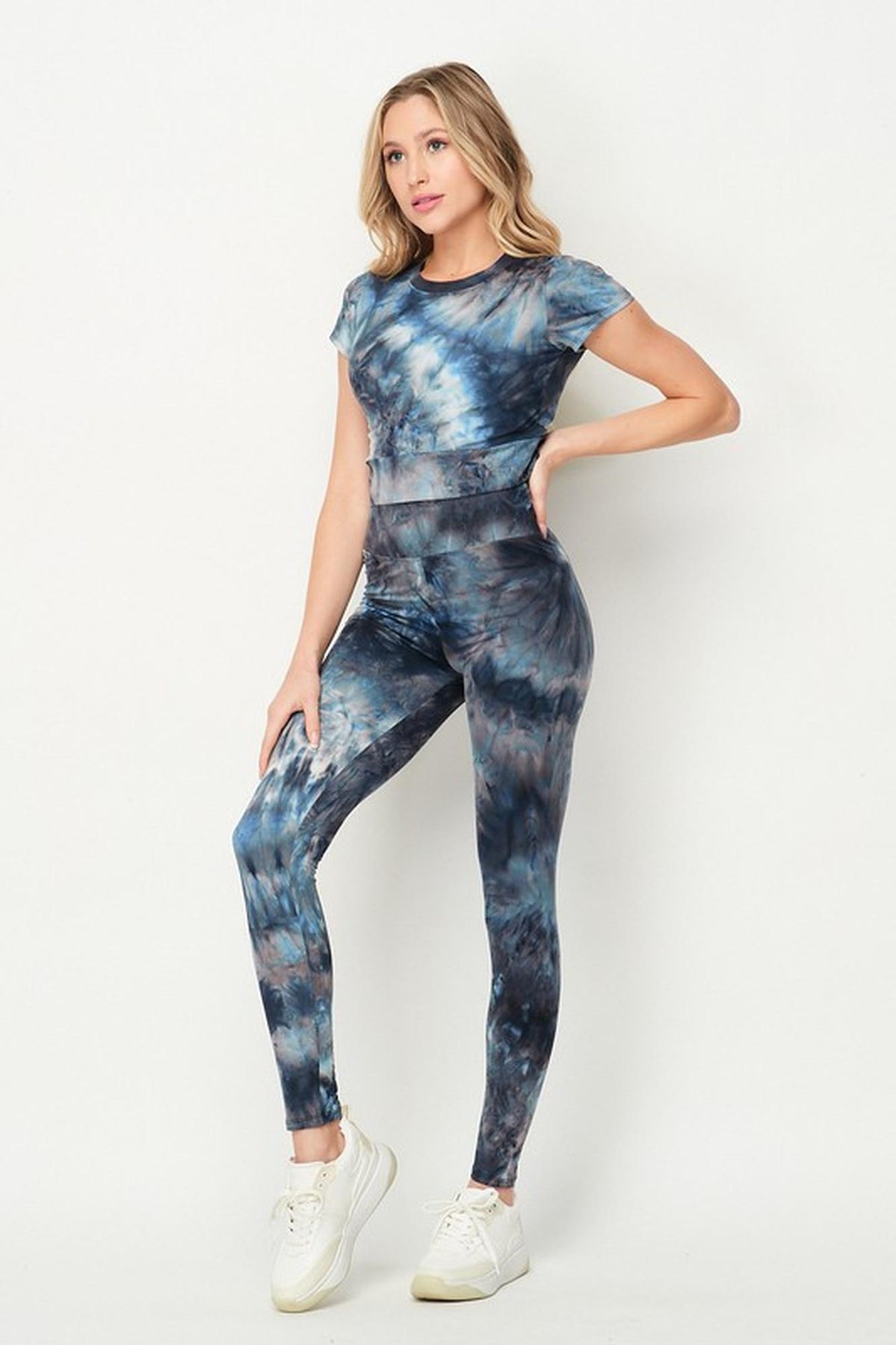 Waste no time pulling together a trendy ensemble, just reach for our Tie Dye 2 Piece Leggings and Short Sleeve Crop Top Set, a pre-coordinated look that's ready to wear. Simply add shoes and you have a fabulous on style outfit with this amazing and comfy set that features soft brushed high waist leggings and a crop top offered in a choice of vibrant tie dye colors.