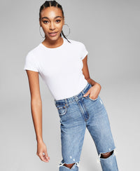 Effortlessly tuck this slim-fitting bodysuit by And Now This into all your fave high-waisted jeans. Model is wearing size small Thong back Crewneck; snap closure at gusset Cotton/spandex Machine washable Imported