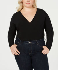 Plus Size Surplice Long Sleeve Bodysuit