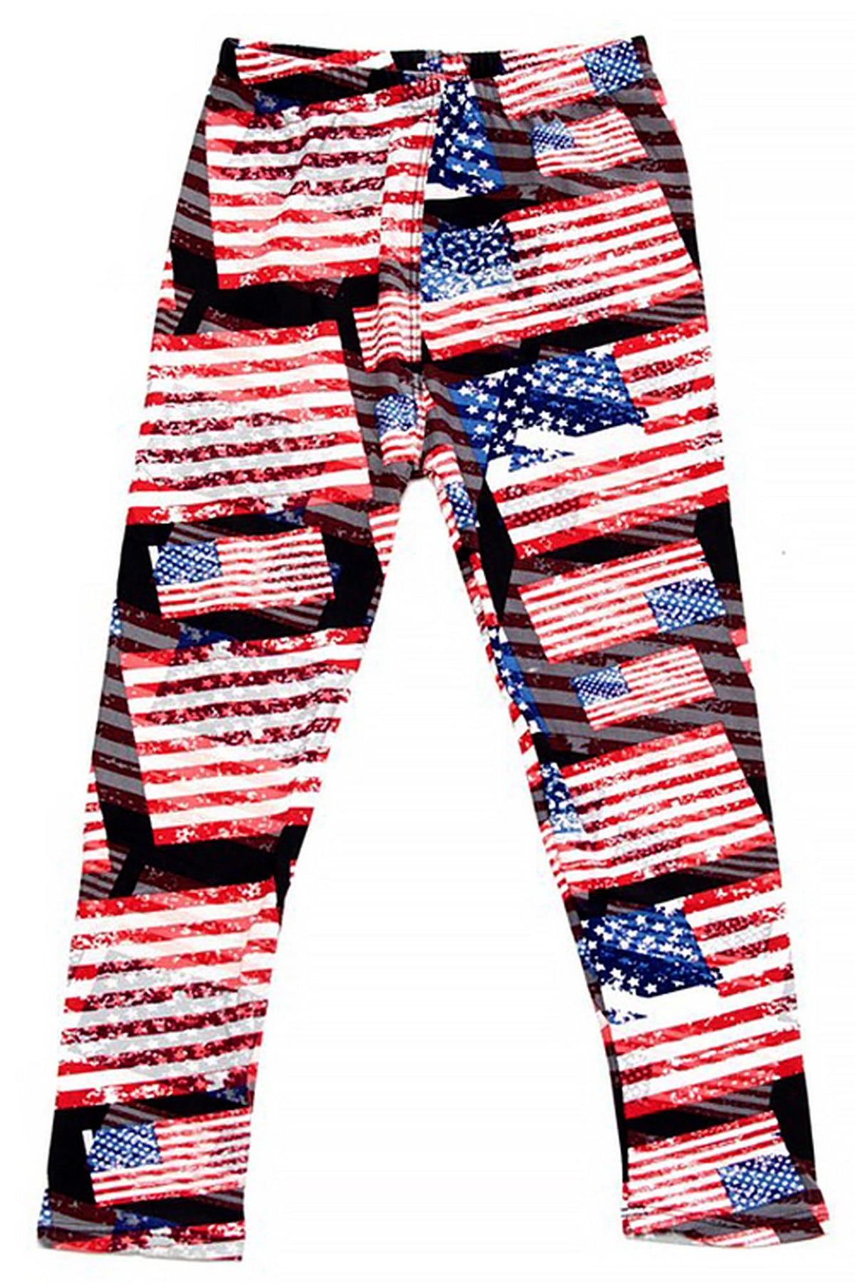 Show up to your next patriotic event or step out in eye-catching style with these Buttery Soft 3D Hologram USA Flag Kids Leggings. The cool layered look has a mix of transparent American flags over opaque flags for a unique dimensional look.