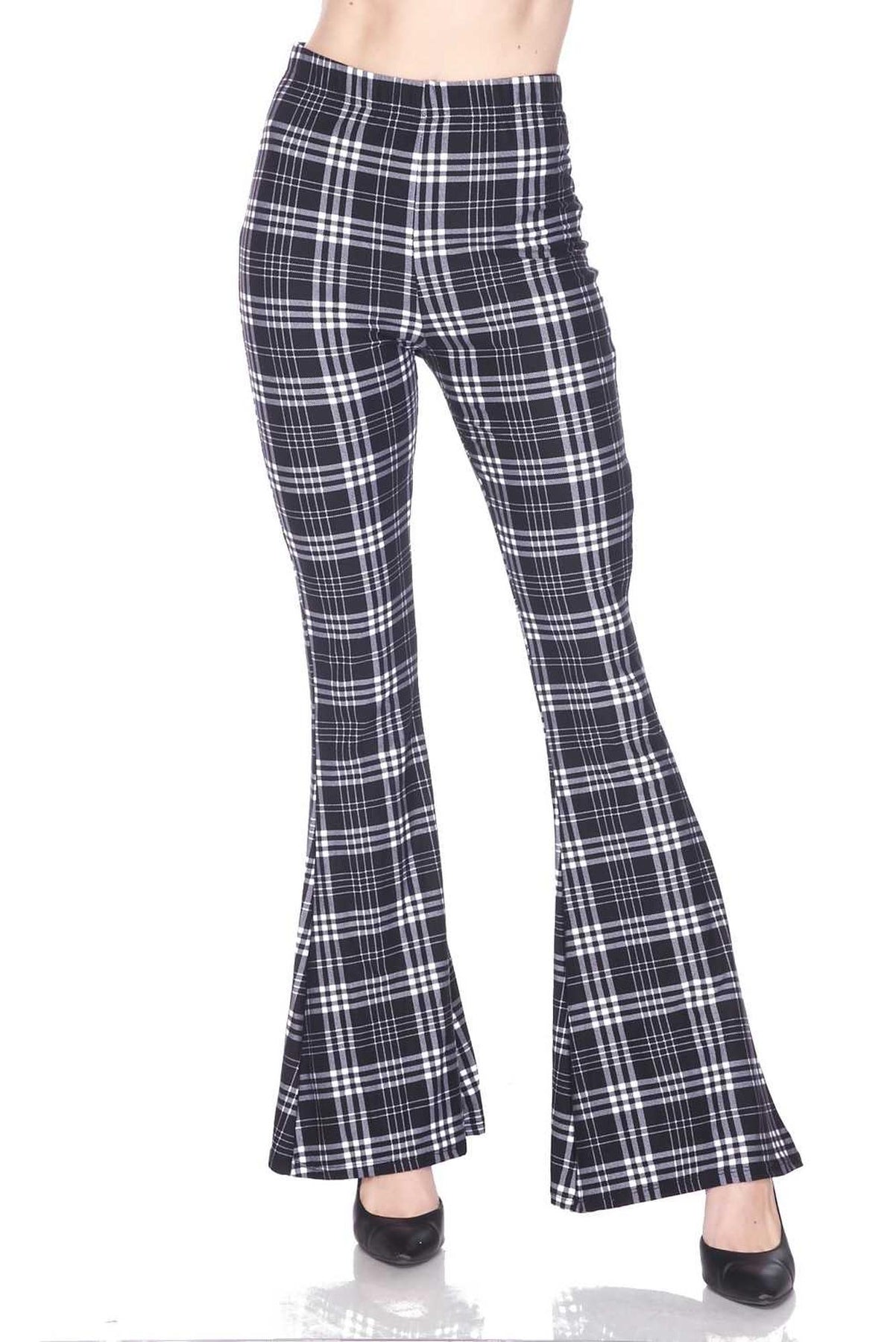 Buttery Smooth Traditional Black and White Plaid Bell Bottom Leggings