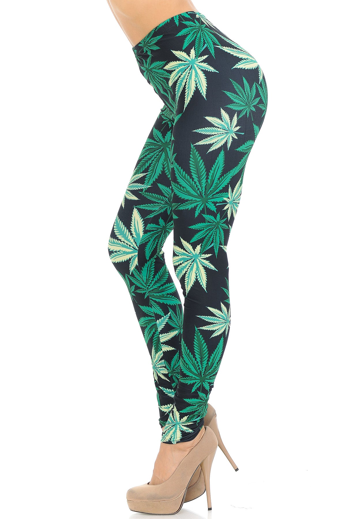 Creamy Soft Black Weed Extra Small Leggings - USA Fashion
