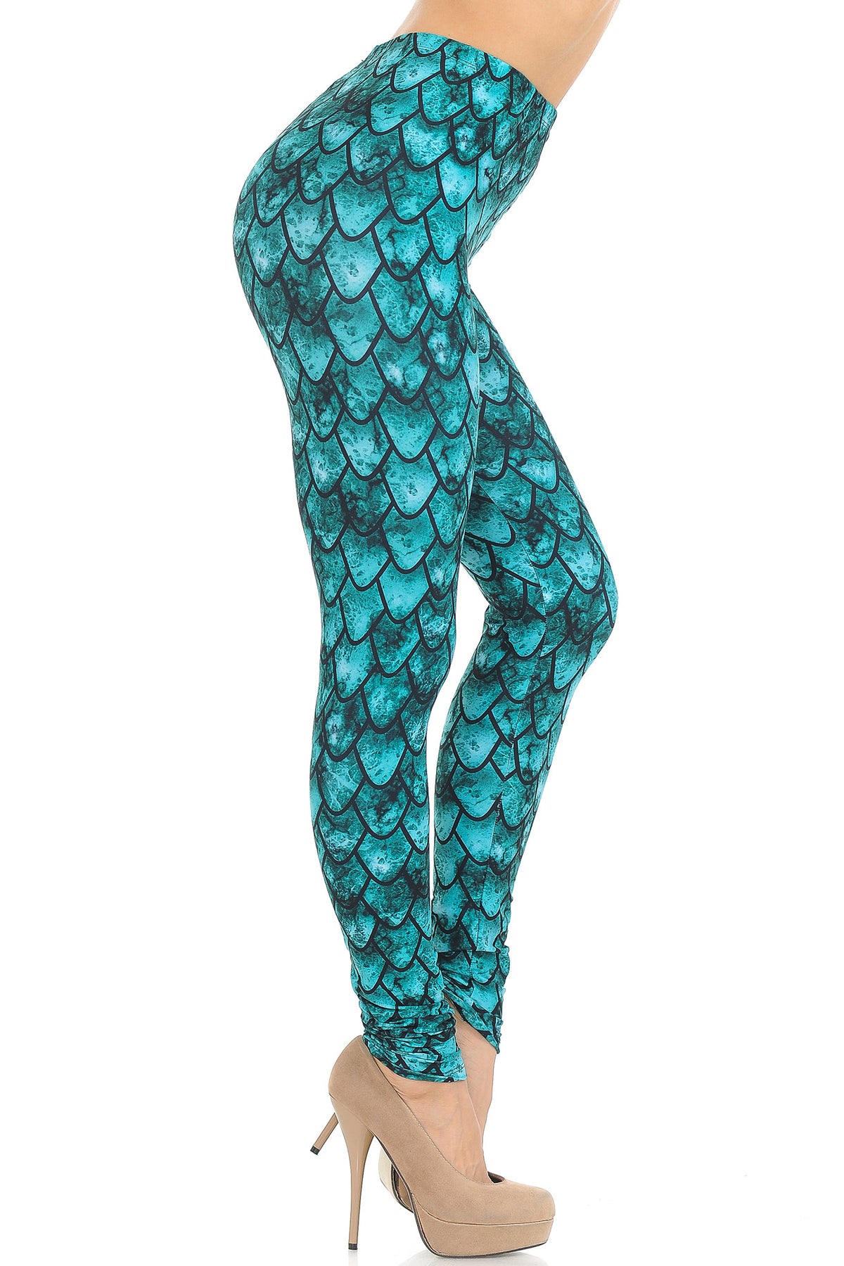 Transform into another species with our fabulous Creamy Soft Green Scale Extra Small Leggings that showcase a stunning scale print. Perfect for unique everyday looks or a mermaid, fish, or dragon costume these soft and comfy leggings can serve you throughout the seasons for both fashion and fun.
