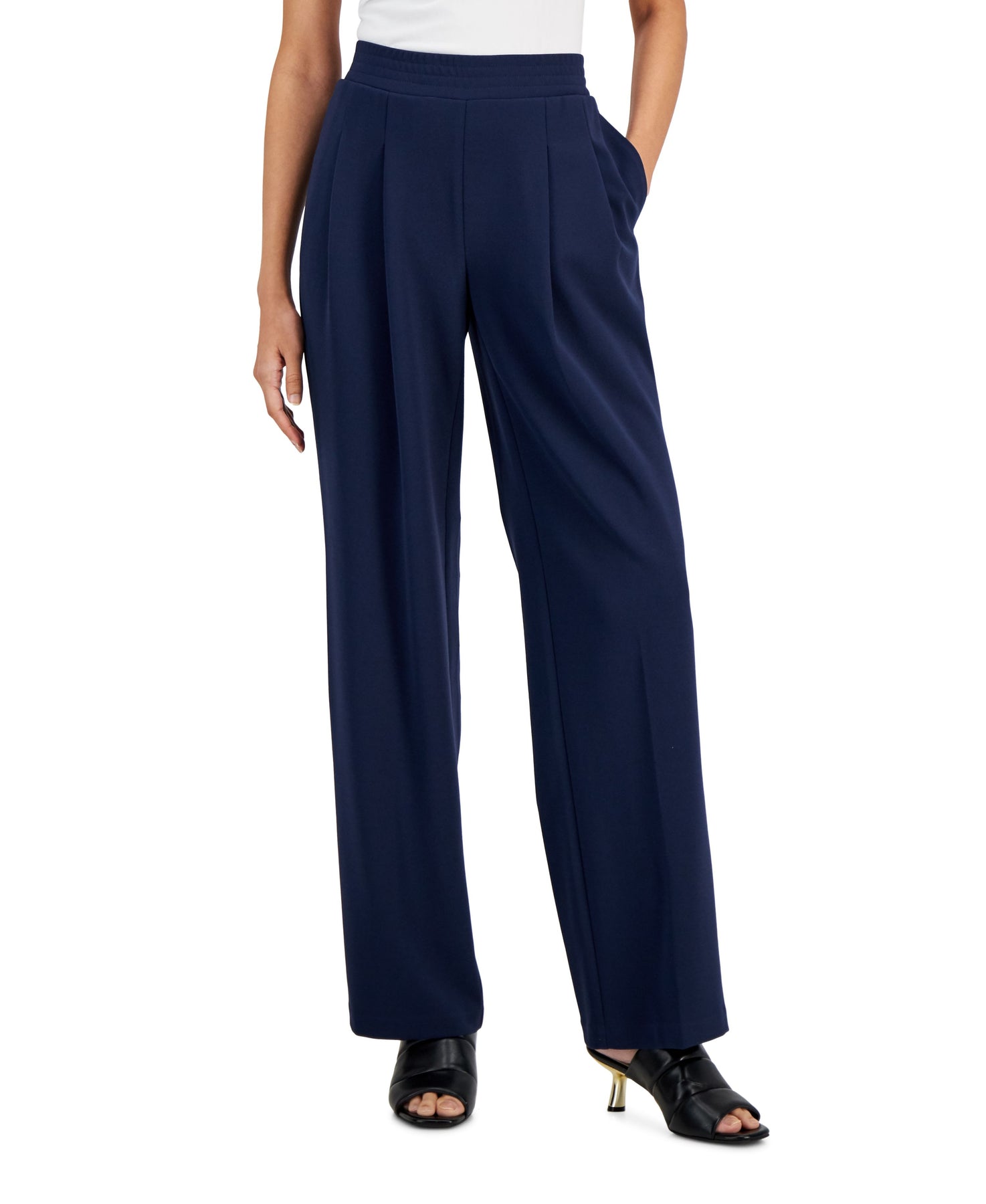 Style flows with every step in these Alfani pants, easy pull-ons with wide legs and chic pleats. Approx. model height is 5'10" and she is wearing a size extra-small Approx. inseam: 30" Approx. rise: 11-1/4; wide legs Pull-on styling On-seam pockets at sides Pleats at front Lined Polyester/spandex Machine washable Imported Web ID: 13335444