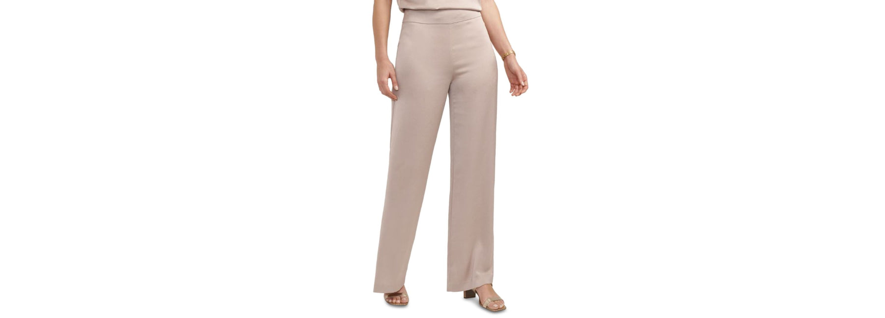 Anne Klein Petite Wide Leg Pull On Satin Pants