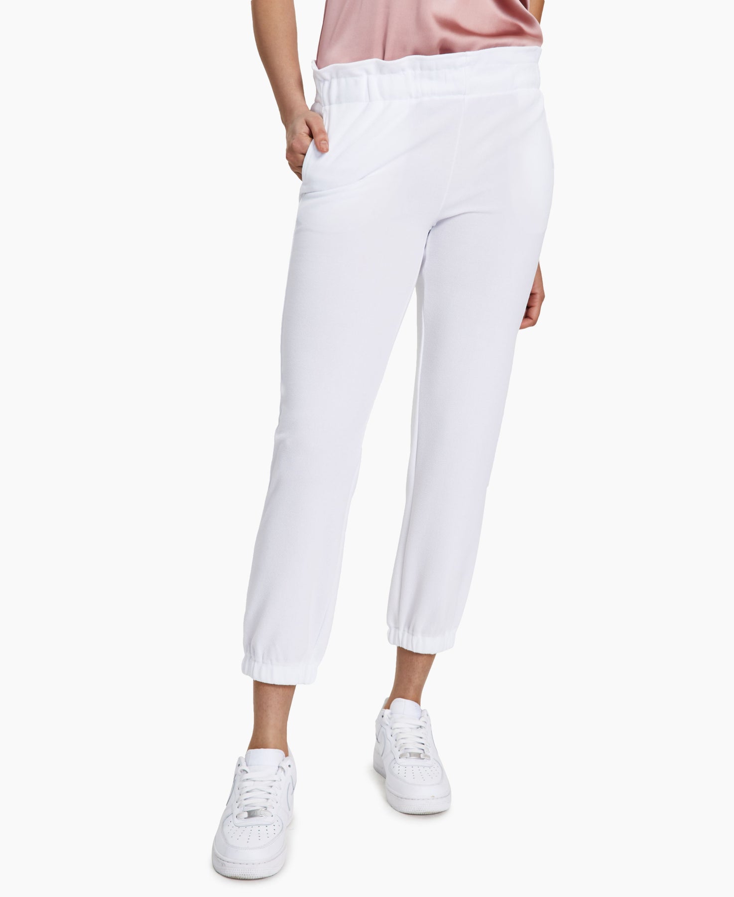 No matter what your day brings, Bar III will have you covered in comfort and style with these petite pull-on pants. Approx. inseam: 25-3/4" Approx. front rise: 11-1/4" Pull-on styling Ruffled waist; elasticized cuffs On-seam pockets at front; welt pockets at back Polyester/spandex Machine washable Imported Web ID: 13313909