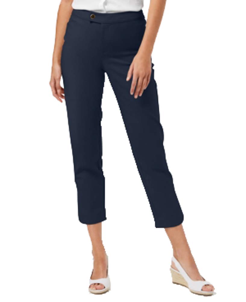 Showcasing a streamlined slim-leg silhouette, Charter Club's petite ankle pants are versatile wardrobe essentials. Approx. inseam: 26" Mid rise Designed to fit and flatter 5'4" and under frame Fly front with button closure Two front pockets; besom pockets at back Cotton/spandex Machine washable Imported