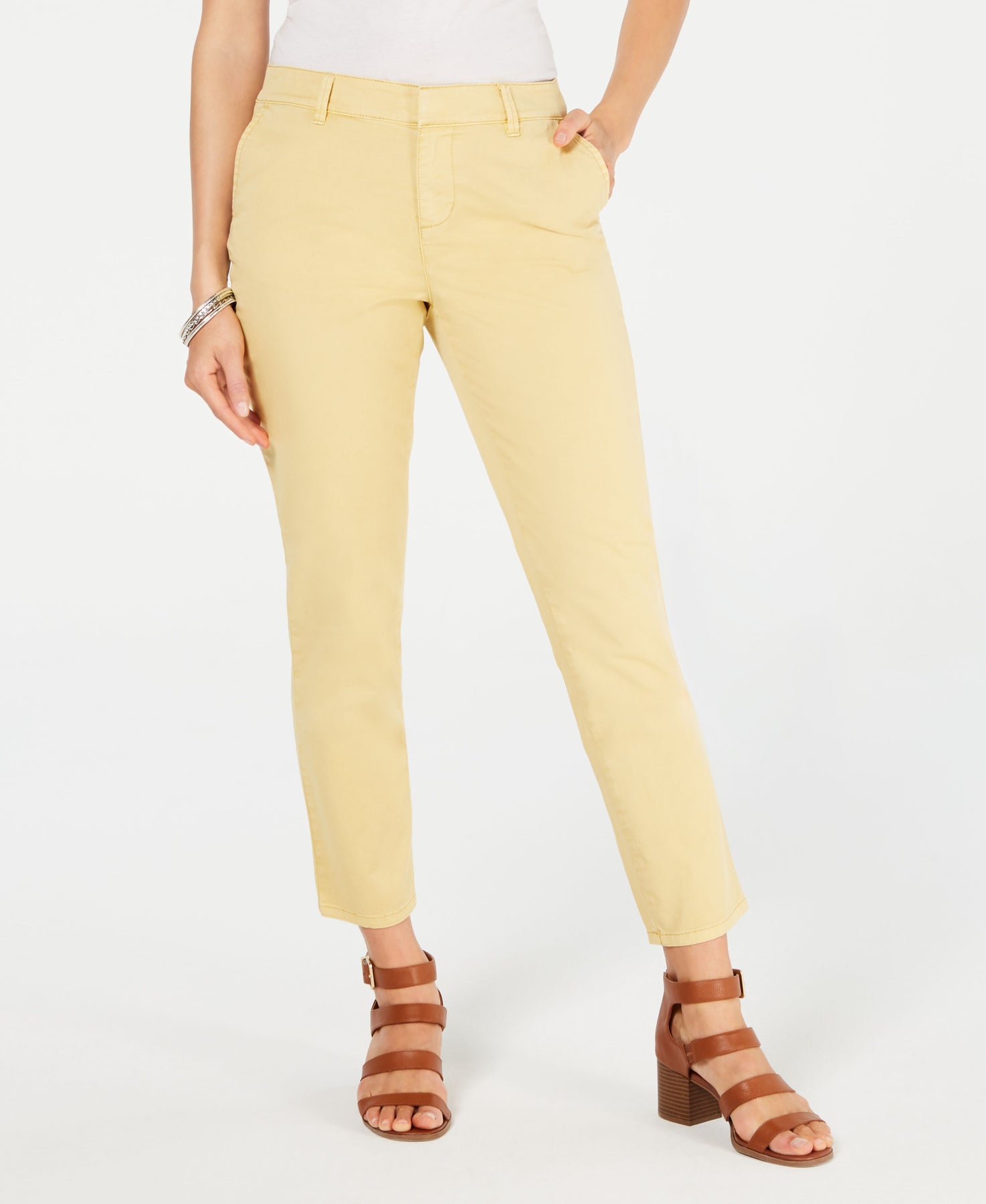 Pants for for any occasion, these chino pants from Style & Co have a versatile slim fit and ankle length perfect for dressing up or dressing down. Approx. model height is 5'10" and she is wearing a size 4 Approx. inseam: 26-1/2"; hits at ankle Mid rise; slim silhouette Two front pockets; two back pockets Due to generous sizing, we suggest sizing down for the perfect fit Cotton/spandex Machine washable Imported Web ID: 7411161