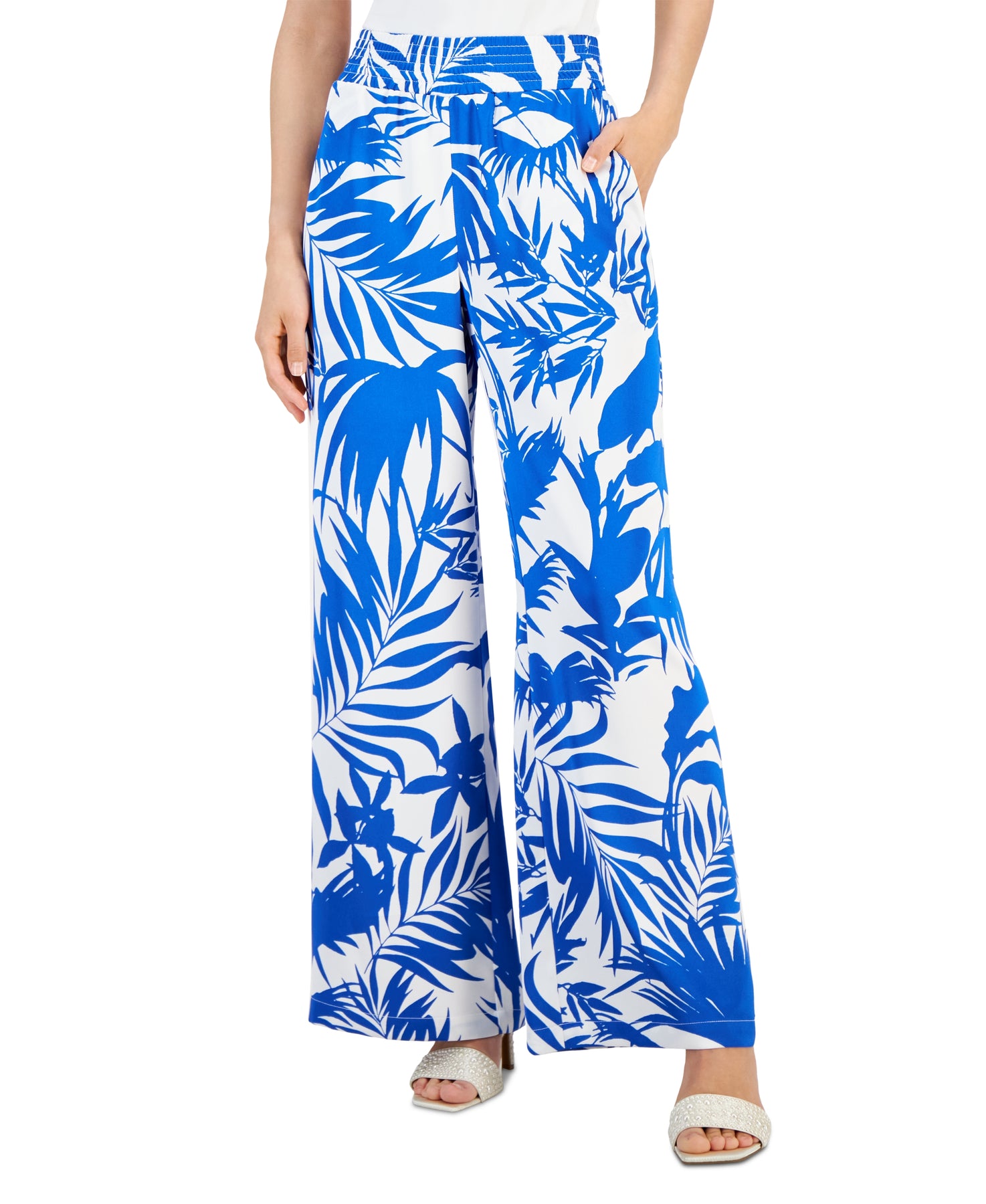 I.N.C. International Concepts brings chic class to your wardrobe with these floral-print, wide-leg pants. The elastic waistband adds an element of comfort for all-day wear with ease. Approx. inseam: 31" High rise; wide leg Pull-on style Smocked waistband Slanted pockets at hips Polyester, spandex Machine wash Imported Web ID: 15736138