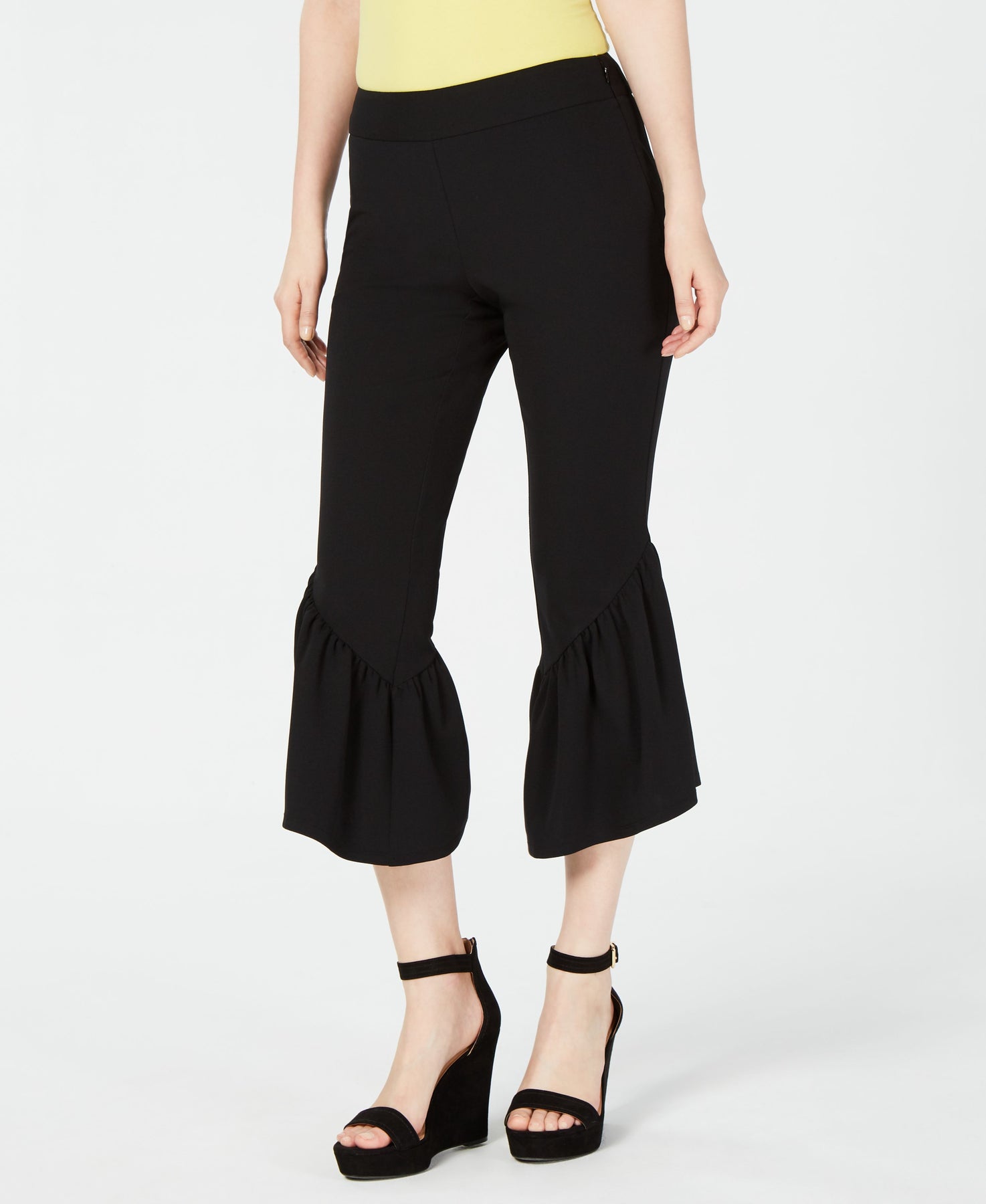 I.N.C. Cropped Ruffle-Hem Crêpe Pants