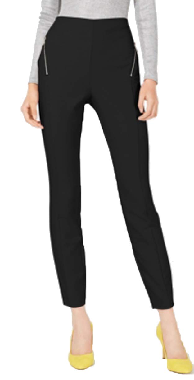Designed with a flattering silhouette, INC International Concepts' sleek skinny pants are complete with shiny silver-tone zippers at the sides. Approx. inseam: 31" Mid rise; approx. 9-3/4"; skinny fit through hips and thighs; skinny leg Hidden side zipper closure Two front non-functional zipper pockets Polyester/spandex Machine washable Imported Web ID: 8330210