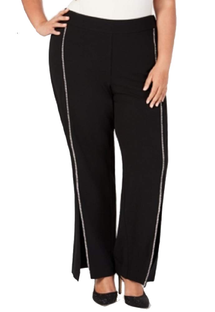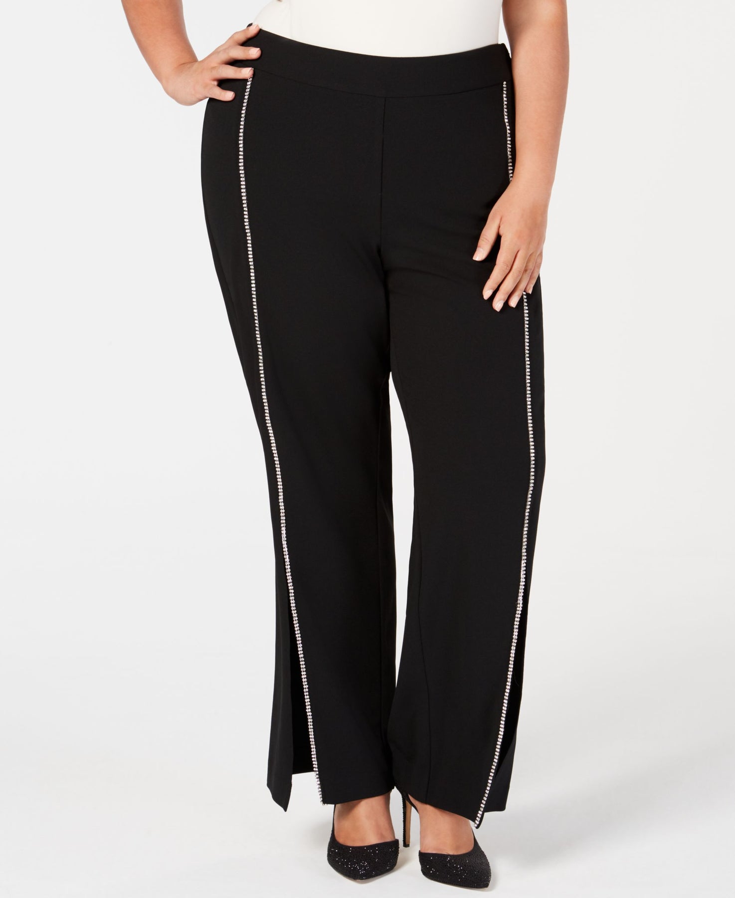 I.N.C. Plus Size Rhinestone-Trim Crepe Wide-Leg Pants