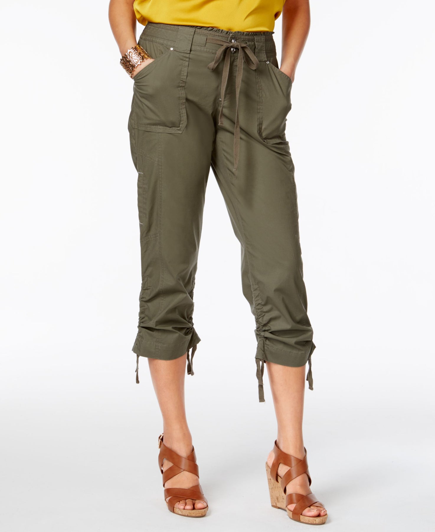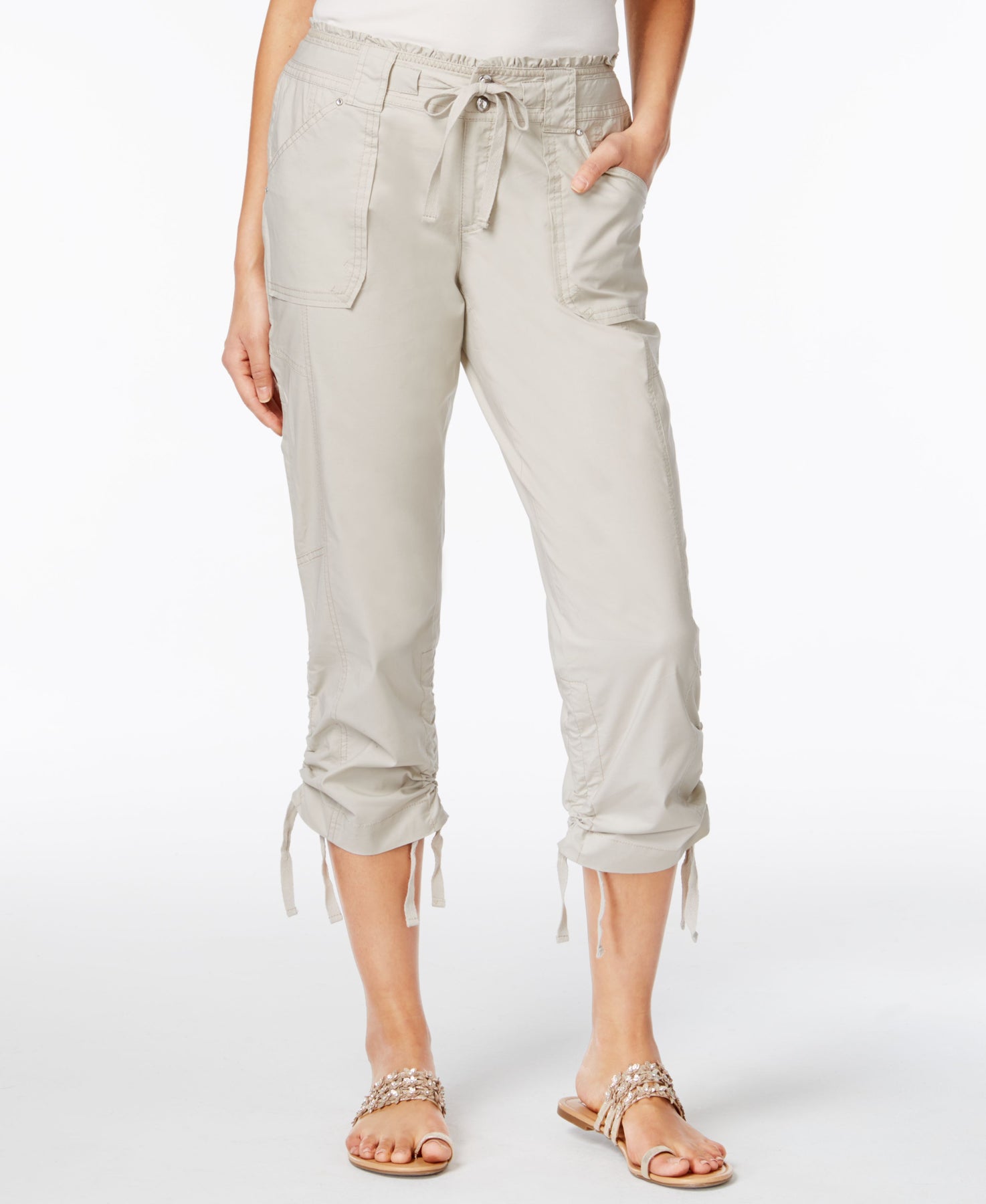 INC International Concepts Ruffled Waist Cropped Cargo Pants