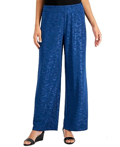 JM Collection brightens up a pair of wide-leg lounge pants with a foiled finishing touch for shine. Approx. model height is 5'10" and she is wearing a size small Approx. inseam: 29" Front rise: approx. 10-1/4"; relaxed fit through hips and thighs; wide leg Due to generous sizing, we suggest sizing down for the perfect fit Pull-on styling Foiled spacedye knit Polyester/spandex Machine washable Imported Web ID: 12483431
