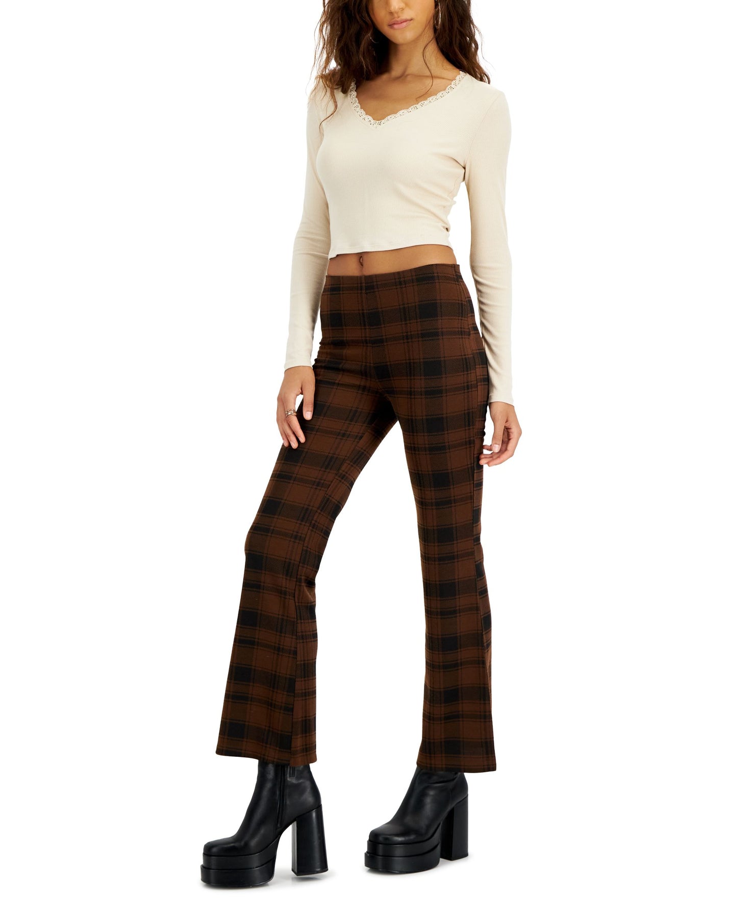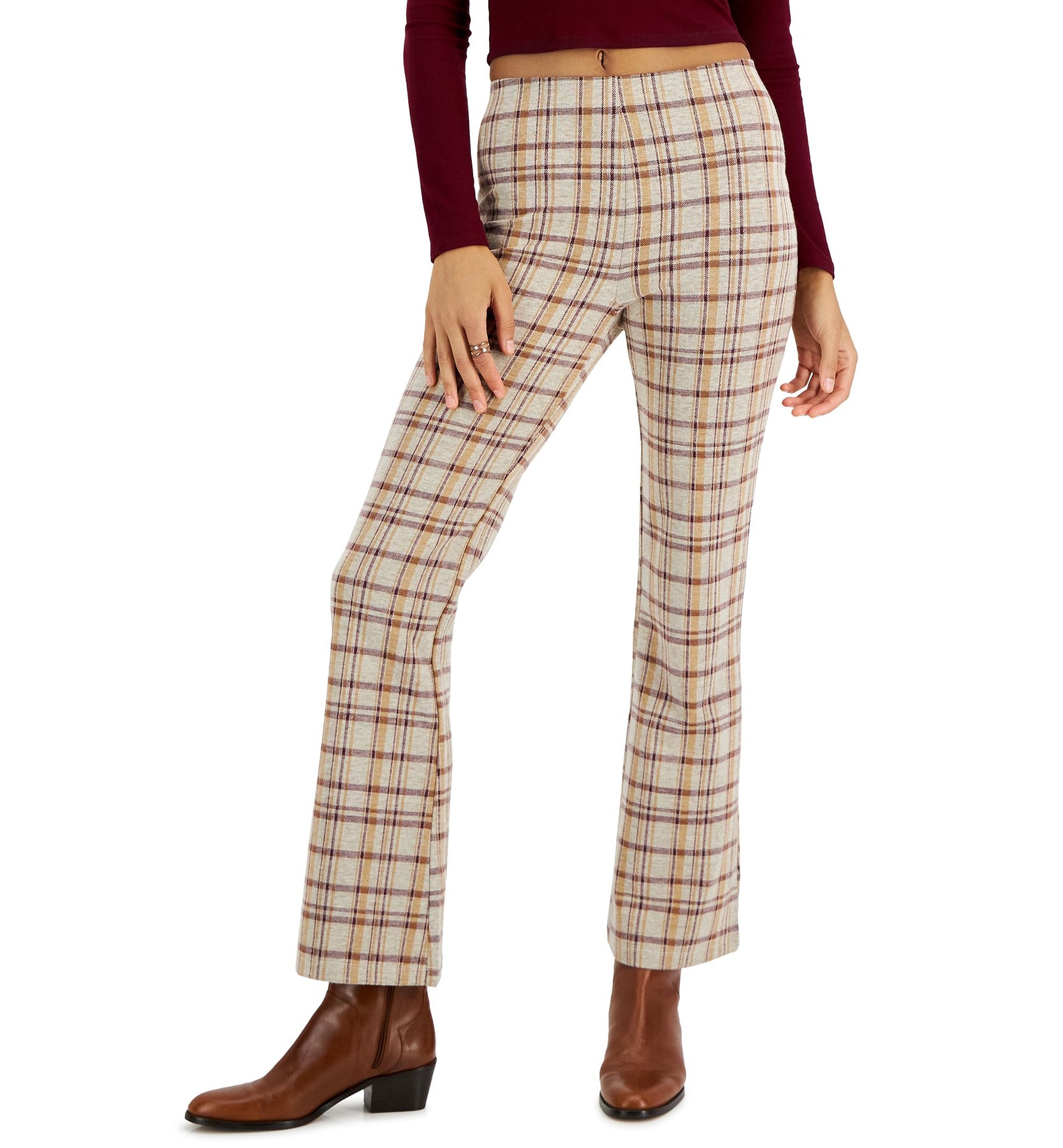Juniors' Plaid Jacquard Flared-Leg Pants
