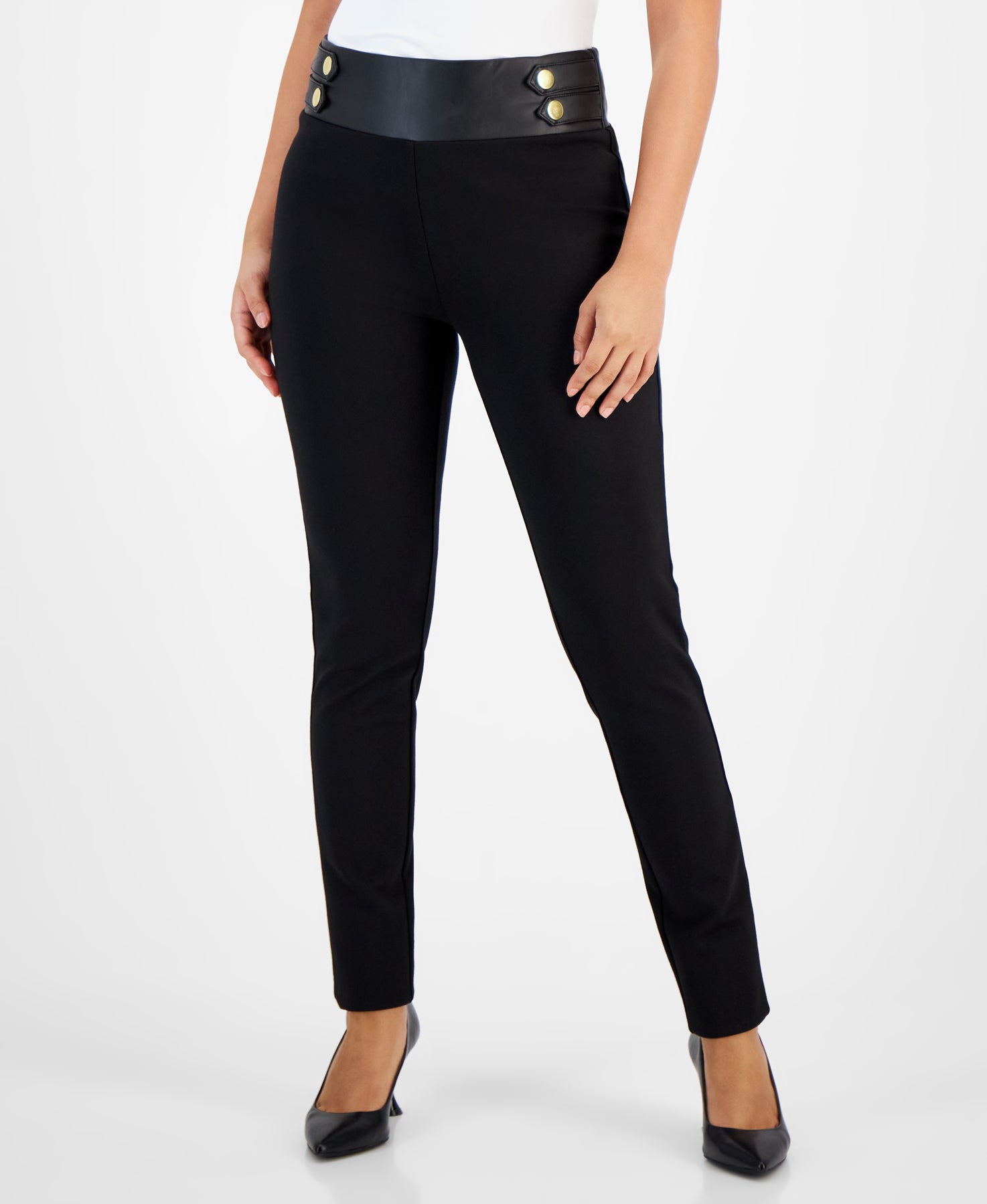 Petite Mixed-Media Ponte Skinny Pants Deep Black PS