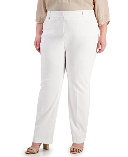 For a chic and classic work look, JM Collection's plus size pants feature a tummy-control panel and a curvy fit that's perfectly proportioned to flatter your plus size figure. The timeless slim-leg silhouette and sophisticated solid hue make them a fabulous building block for any outfit. Pair them with a printed blouse, polished blazer and point-toe pumps for days at the office, or go casual with printed flats and a T-shirt that plays homage to your favorite band. Perfectly proportioned for the Plus Size woman Tummy control panel helps slenderize mid-section and retain shape Curvy fit through hips and thighs Comfy mid-weight stretch woven fabric Five-pocket styling Approximate inseam: 32"(W), 30" (WP) Petite plus sizes designed to fit and flatter 5'4" and under frame Complete the look with a printed top, basic t-shirt, or cardigan. Same Great Fit. Same Great Brand. New, Fresh Label Rayon/nylon/spandex; panel: nylon/spandex Machine washable Imported Web ID: 17396101