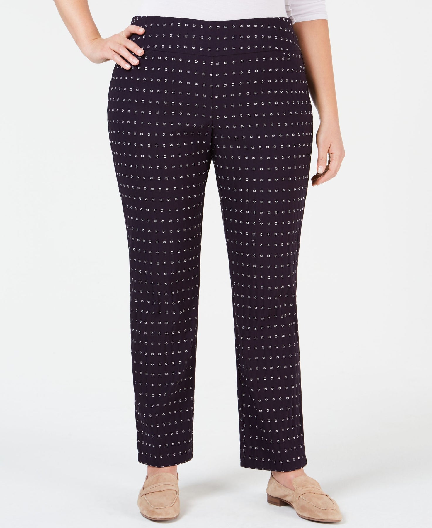We love the effortless comfort and versatility of these printed Cambridge pants by Charter Club. Approx. inseam: 30" Mid rise; slim fit through hip and thigh Pull-on styling Tummy-control panel Two non-functional back welt pockets Rayon/polyester/nylon/spandex Machine washable Imported Web ID: 7112662