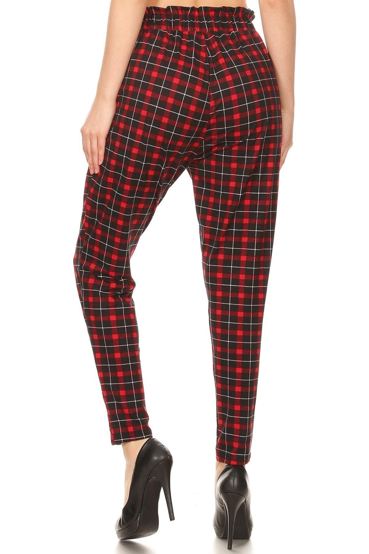 Red Plaid High Waisted Paper Bag Tie Front Pants