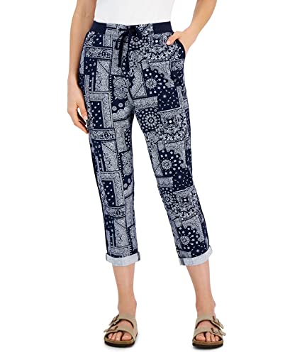 Style & Co ensures all eyes are on you with this bandana printed pair of pants that instantly elevates your casual comfort to chic design. Approx. model height is 5'10" Approx. inseam: 25-1/2" rolled; 28" unrolled Mid rise Pull on styling with elastic waistband Two front pockets, two back pockets Shell: cotton/rayon/spandex; lining: cotton/spandex Machine washable Imported Web ID: 13292559