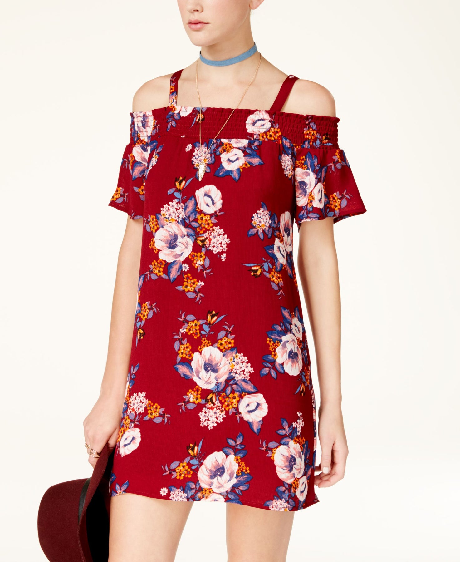 As U Wish Juniors Printed Cold Shoulder Shift Dress