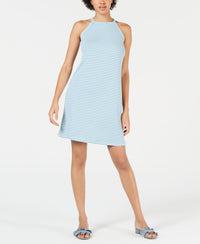 Maison Jules makes being both stylish and comfortable an effortless feat with this pullover, halter-neck shift dress in a soft pink hue. Approx. 35-1/4" long Halter crewneck; shift silhouette Pullover style Polyester/rayon/spandex Machine washable Made in USA of imported materials