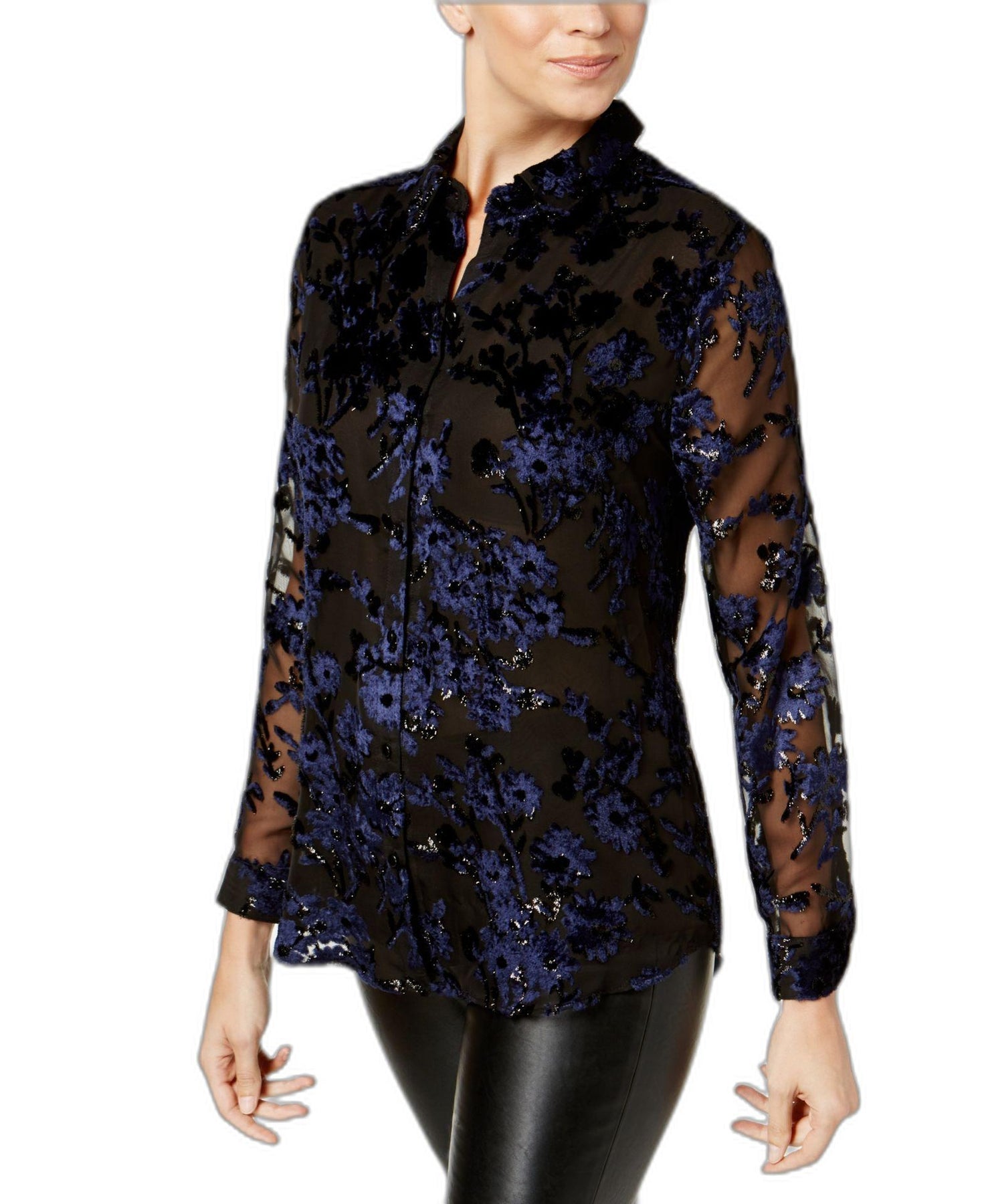 Charter Club Petite Flocked Button Down Blouse