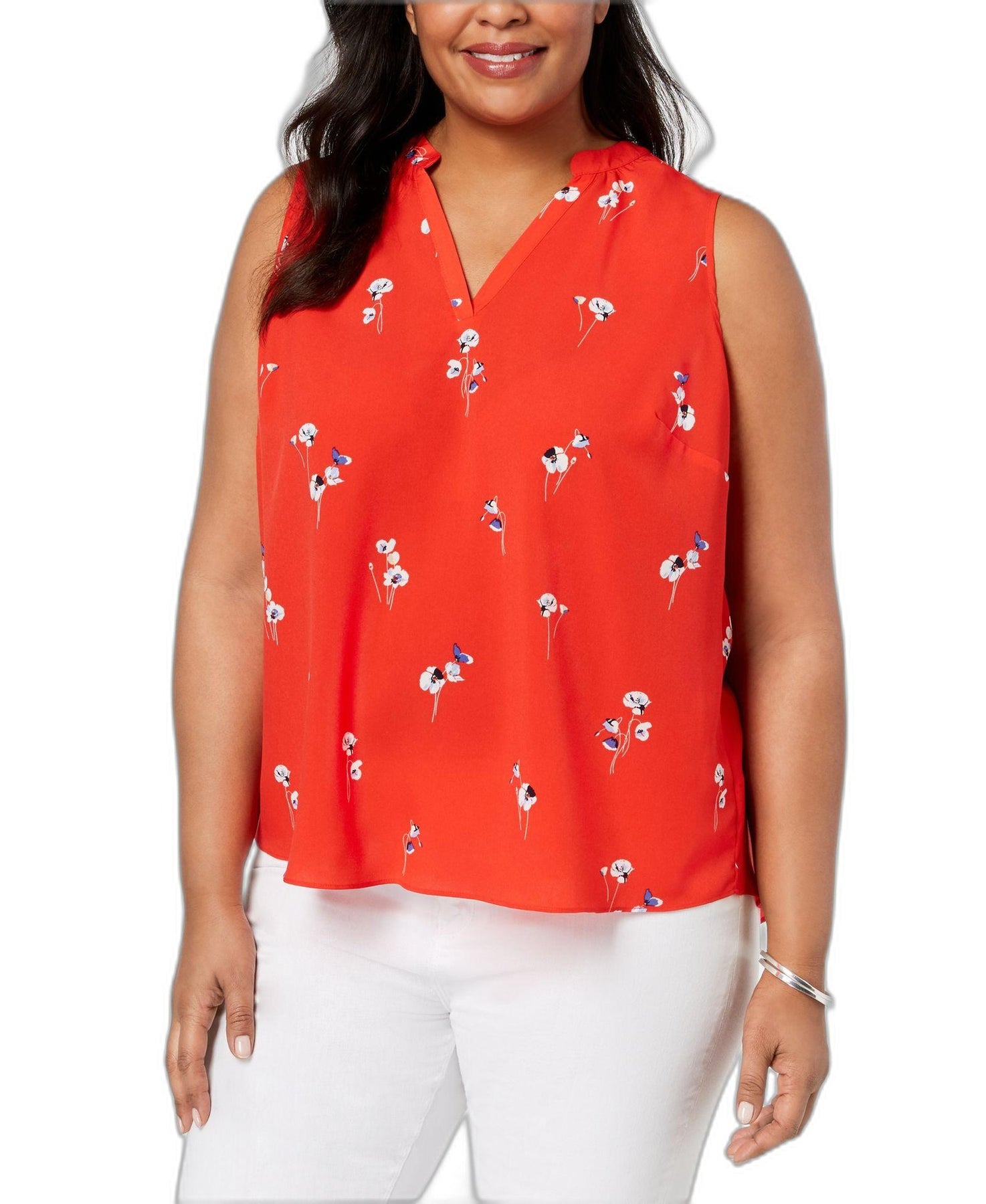 Charter Club updates a sleeveless plus size blouse with a cheery floral print and a flattering split neckline. Split neckline Easy fit; hits at hip Polyester Machine washable Imported