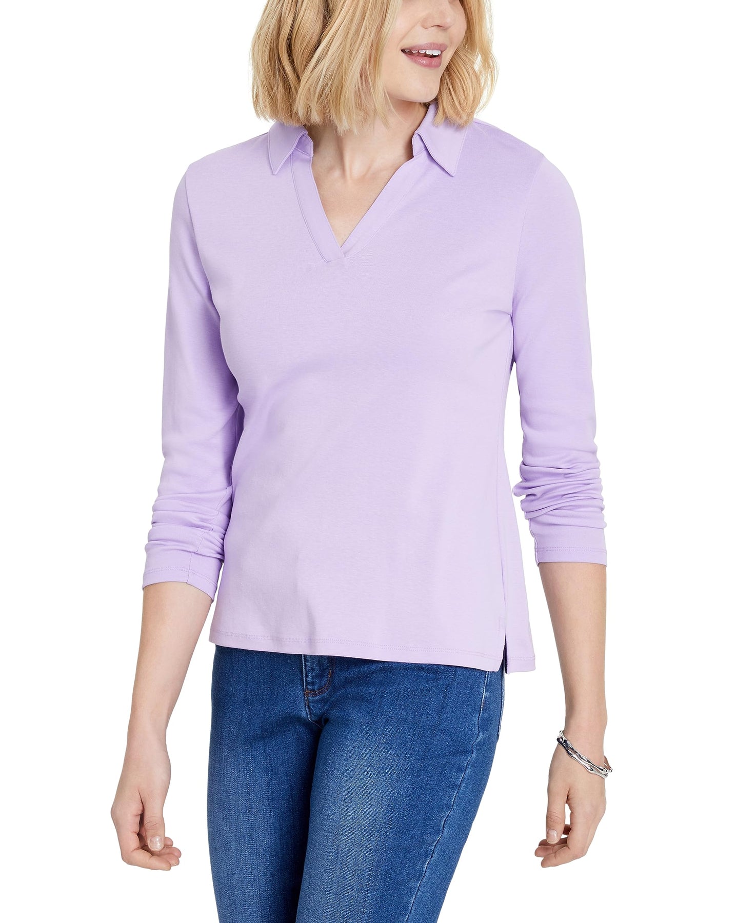 Charter Club Womens Cotton Johnny Collar T-Shirt