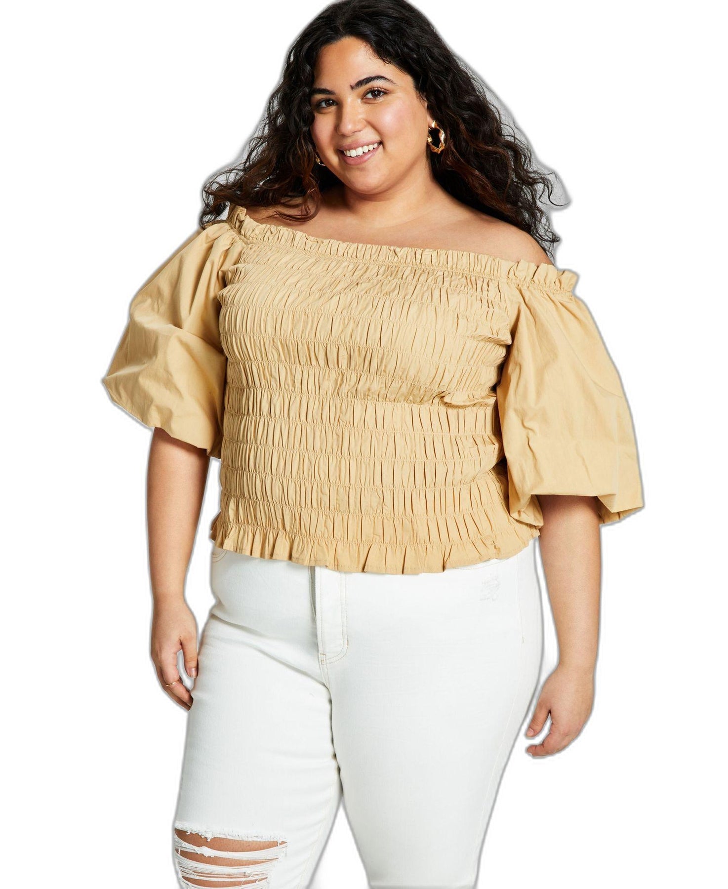 Now This Trendy Plus Size Smocked Poplin Shirt