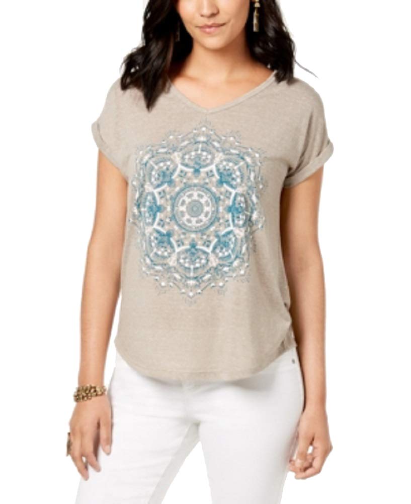 Designed with a bold and bright graphic print, Style & Co's petite T-shirt is a relaxed essential styled with a breezy shirttail hem. Relaxed fit; hits at hip Designed to fit and flatter 5'4" and under frame V-neckline Graphic print at front; shirttail hem Polyester/cotton Machine washable Imported Web ID: 5976046