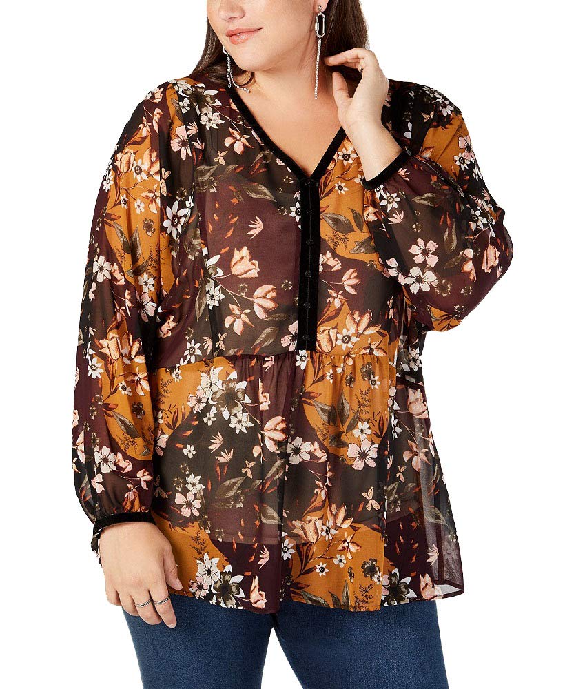Plus Size Printed Sheer Blouse