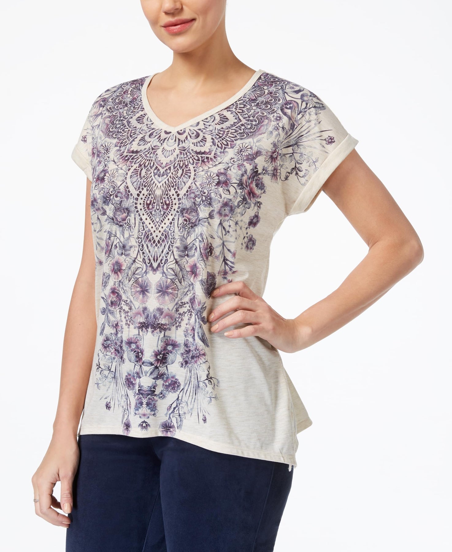 Style & Co Petite Printed Cuff Sleeve T-Shirt