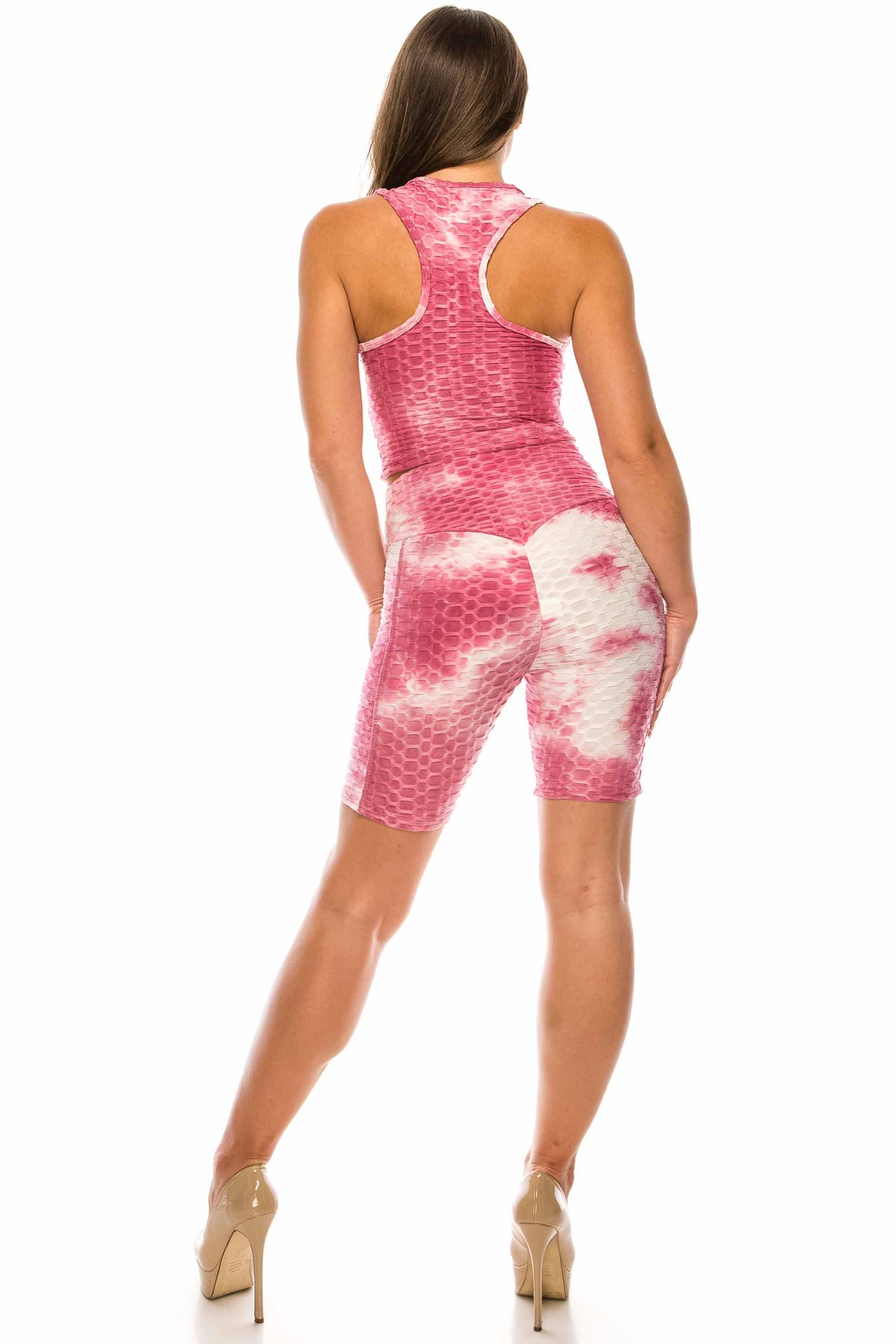 Get a fabulous complete look that's colorful and coordinated for they gym or your everyday athleisure style ensembles with this 2 Piece Scrunch Butt Sport Shorts and Crop Top Set with Pockets. It features a trendy tie dye look you will love, and the highly sought after scrunch butt shorts offer the most amazing snatched and sculpted look for your booty.