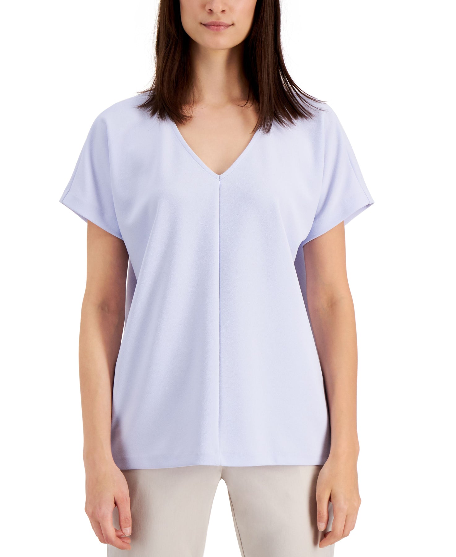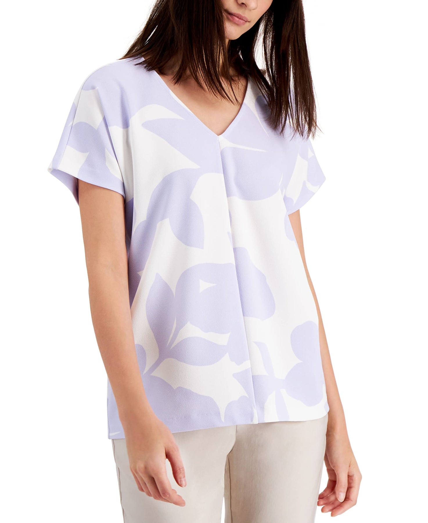 A relaxed fit and fashionable print make this top from Alfani your new go-to look for weekdays and weekends. Approx. model height is 5'10" and she is wearing size small Approx. 26-1/2" long V-neck Cap sleeves Polyester/spandex Machine washable Imported Web ID: 12875655
