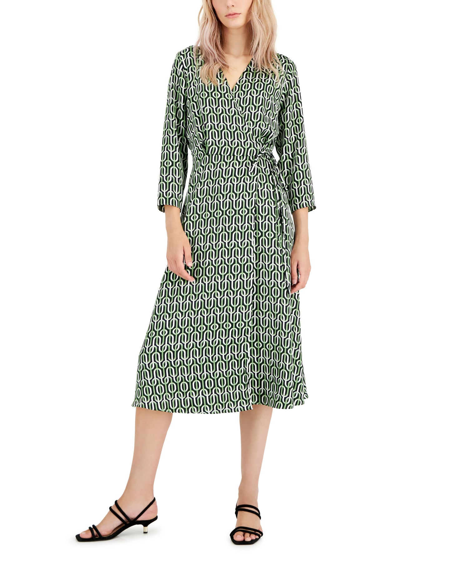 Alfani Womens Elbow Sleeve Satin Surplice Dress