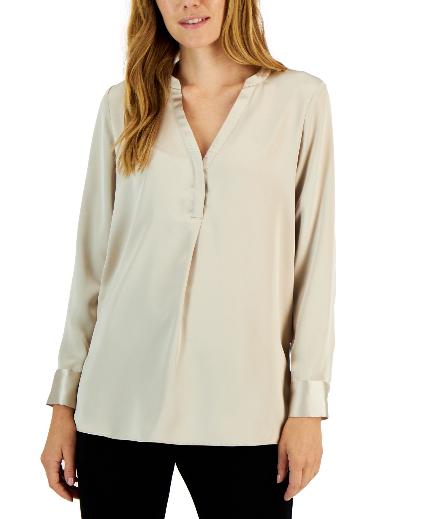 Alfani Womens Satin Half Placket Blouse
