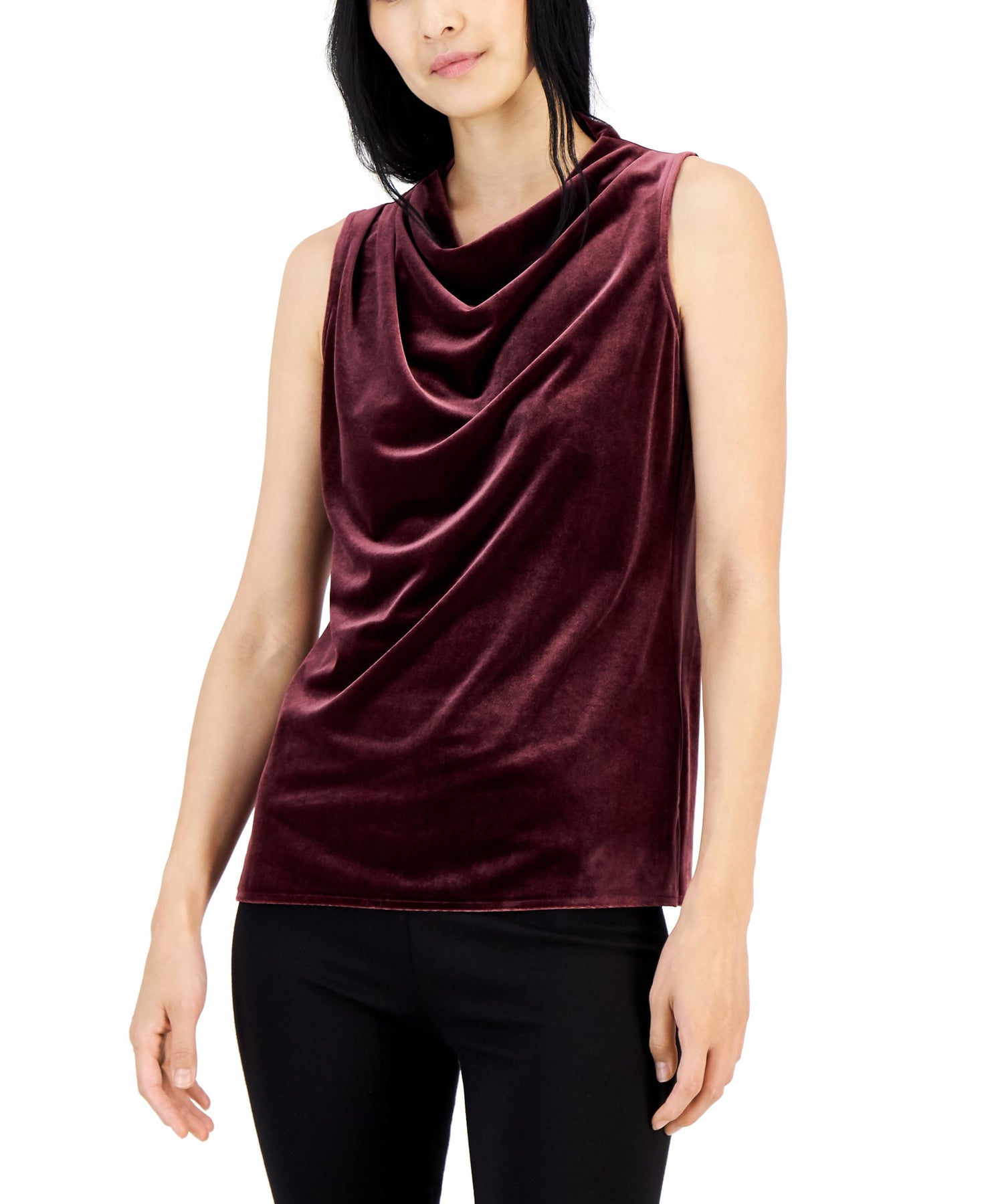 Alfani Womens Velvet Cowlneck Top