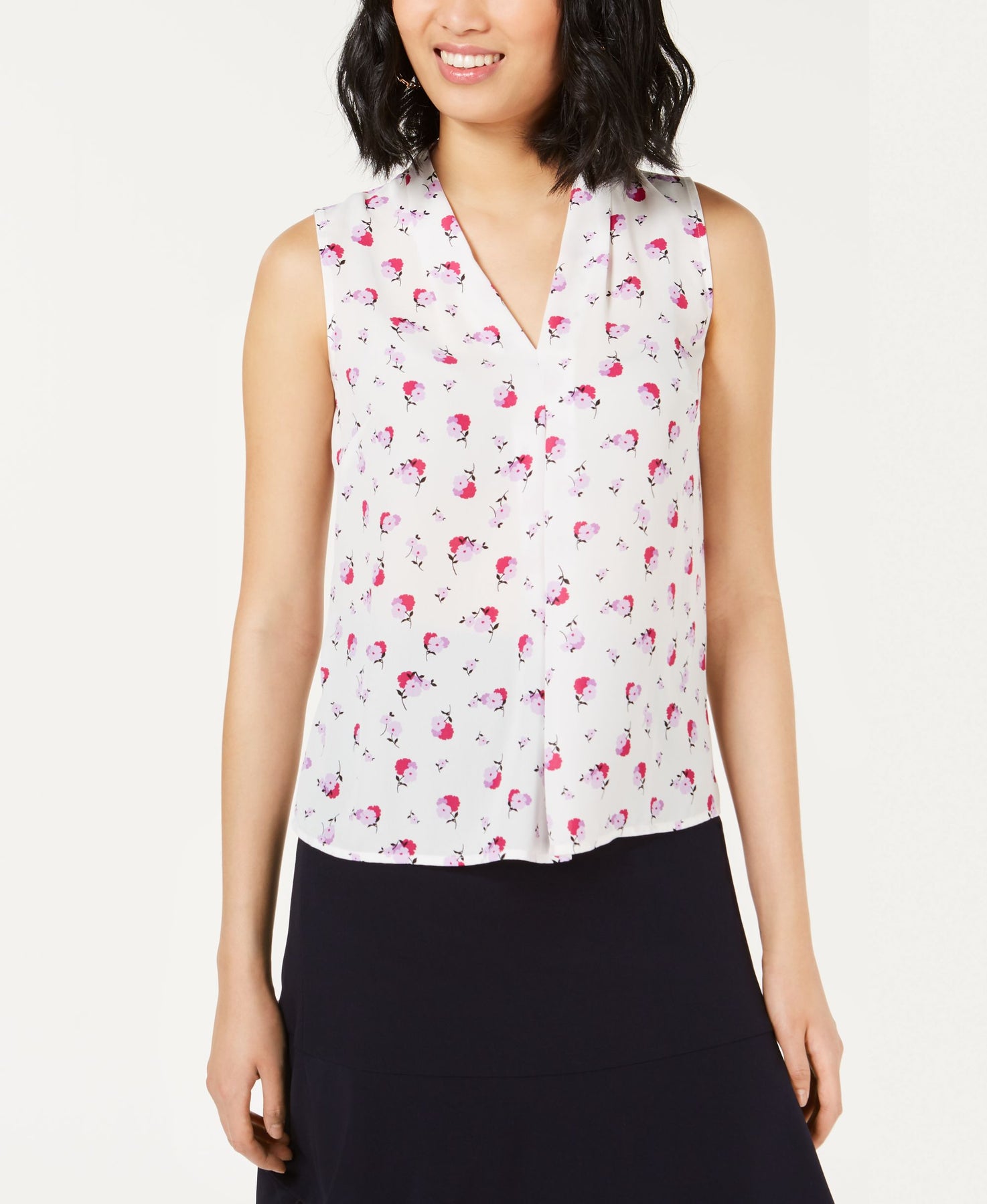 Inverted pleats and fresh peonies on Bar III's sleek V-neck top add a hint of spring to your everyday work look. Approx. model height is 5'10" and she is wearing a size small Hits at hip V-neck Polyester Machine washable Imported