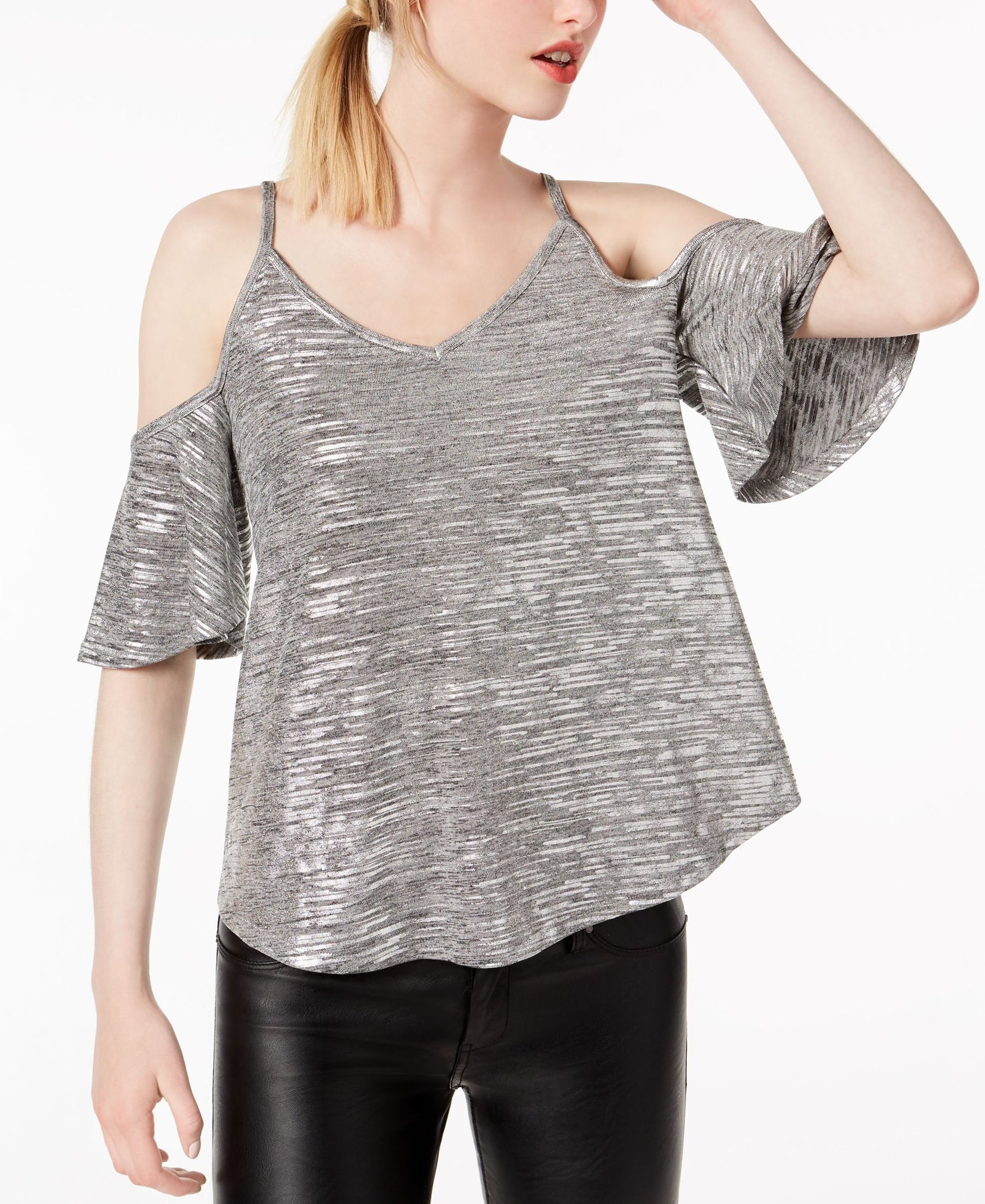 Bar III Metallic Spacedyed Cold Shoulder Top