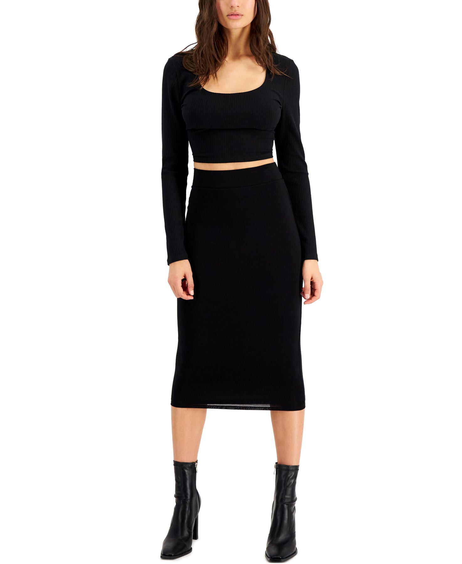 An endless comfy fit that hugs all your curves from Bar III. Pair this chic cropped design with a variety of bottoms for a stylish finish. Approx. model height is 5'10" and she is wearing a size small Approx. 15-7/8" long Scoop neckline Double layer fabric Polyester/rayon/spandex Machine washable Imported