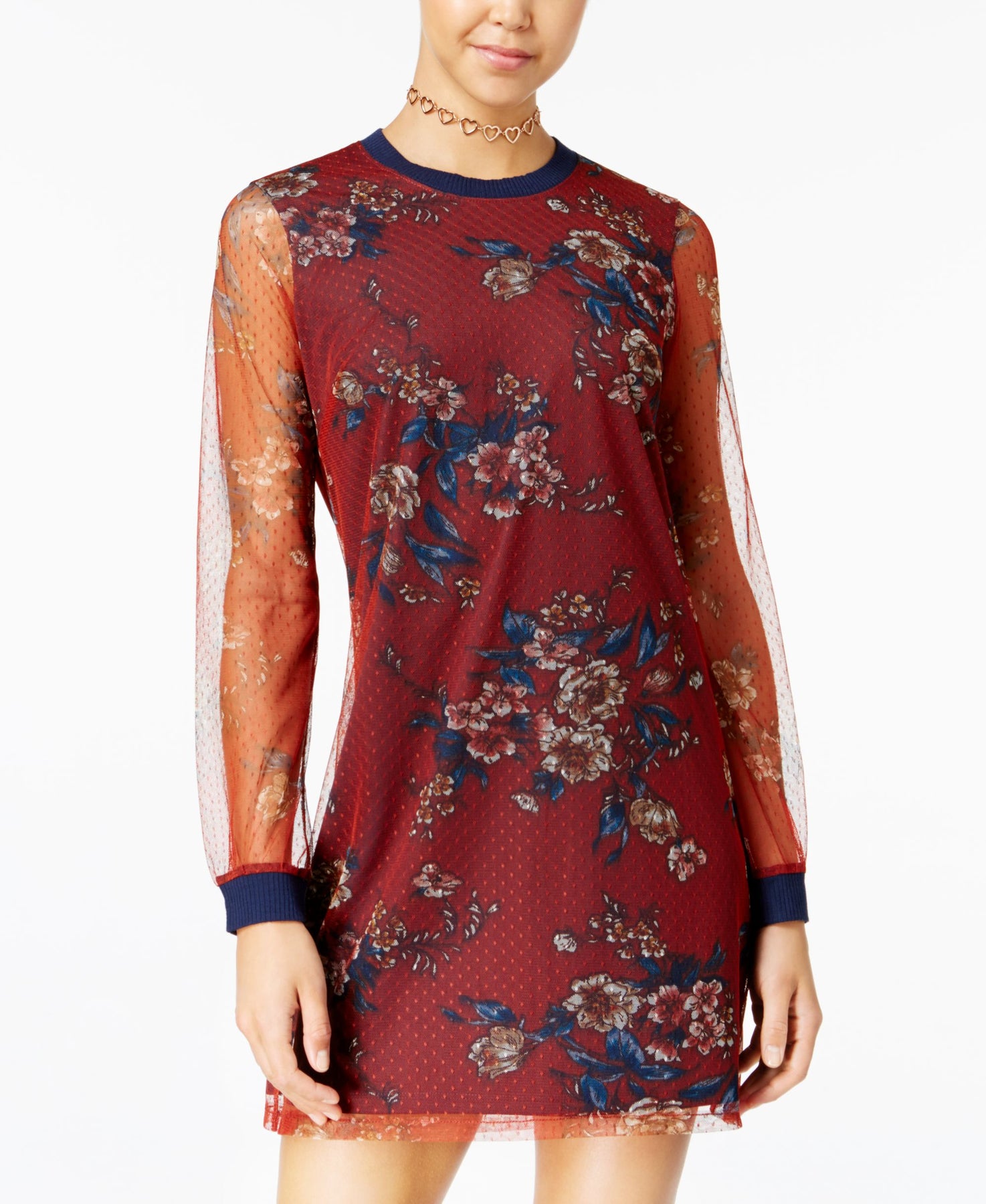 Be Bop Juniors Printed Swiss Dot Mesh Dress