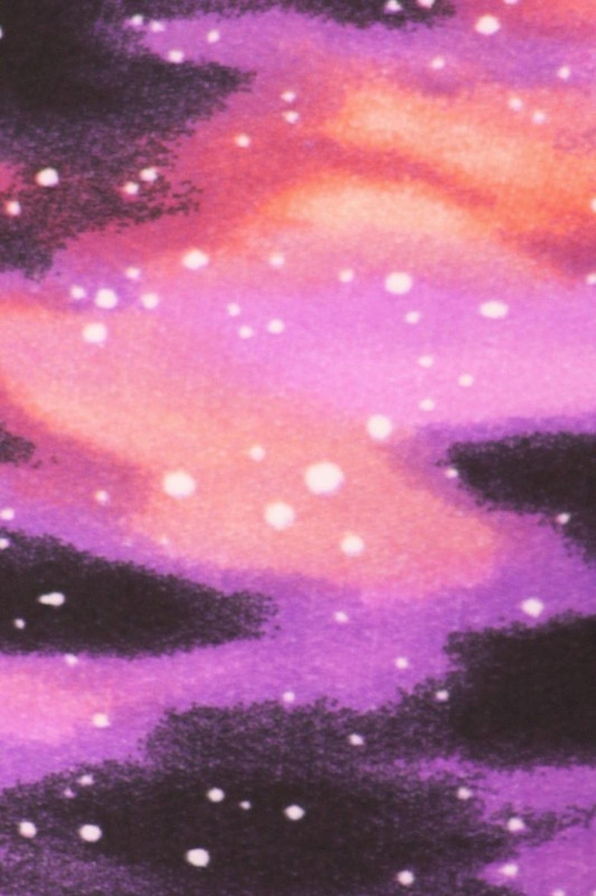 With a gorgeous eye-catching look from every angle these Buttery Soft Purple Mist Bell Bottom Leggings will add excitement and unique style to all outfits. Defined by a stunning galaxy sky print in a colorful purple and pink on black color scheme, these flared leggings exude amazing vibrancy.