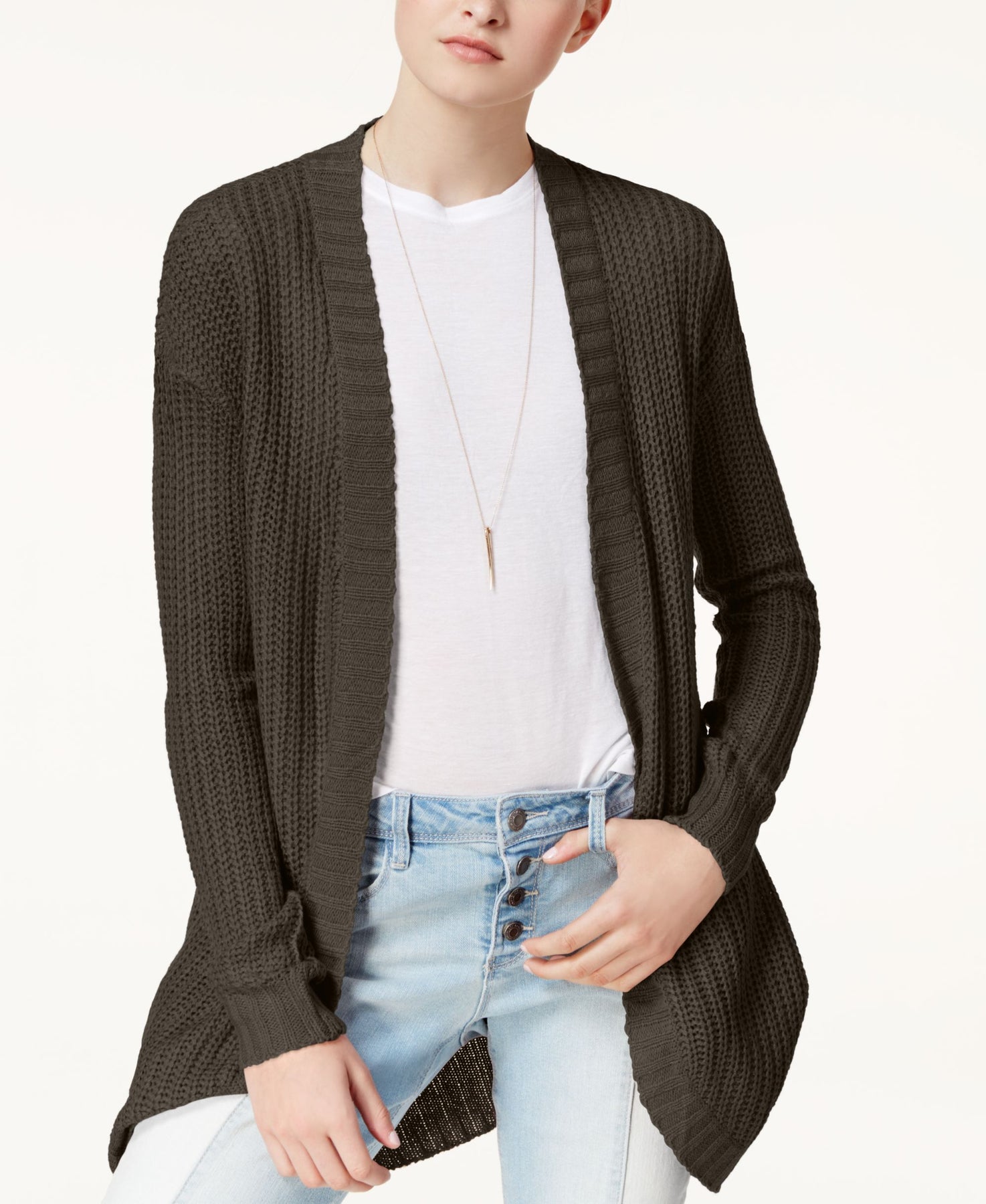 Ultra Flirt's cozy cardigan is designed with a slouchy fit and versatile open front for a cool layering essential. Open front Approx. model measurements: height: 5'9-1/2"; bust: 32"; waist: 25"; hips: 34" Slouchy fit Hits below hip Acrylic Hand wash Imported Web ID: 5332705