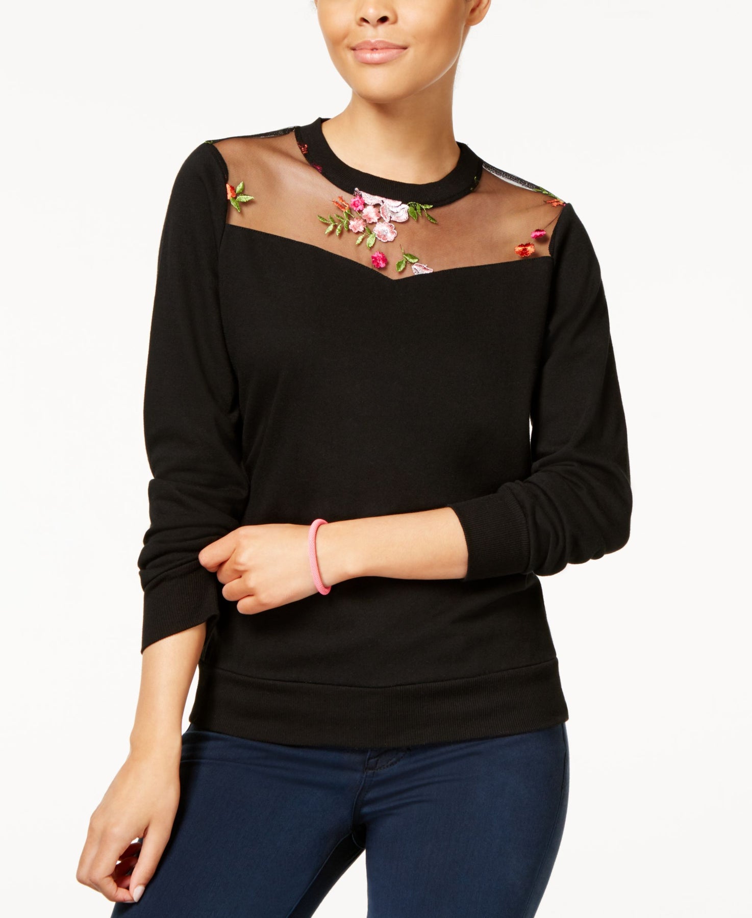 Say What Juniors Illusion Floral Embroidered Sweatshirt