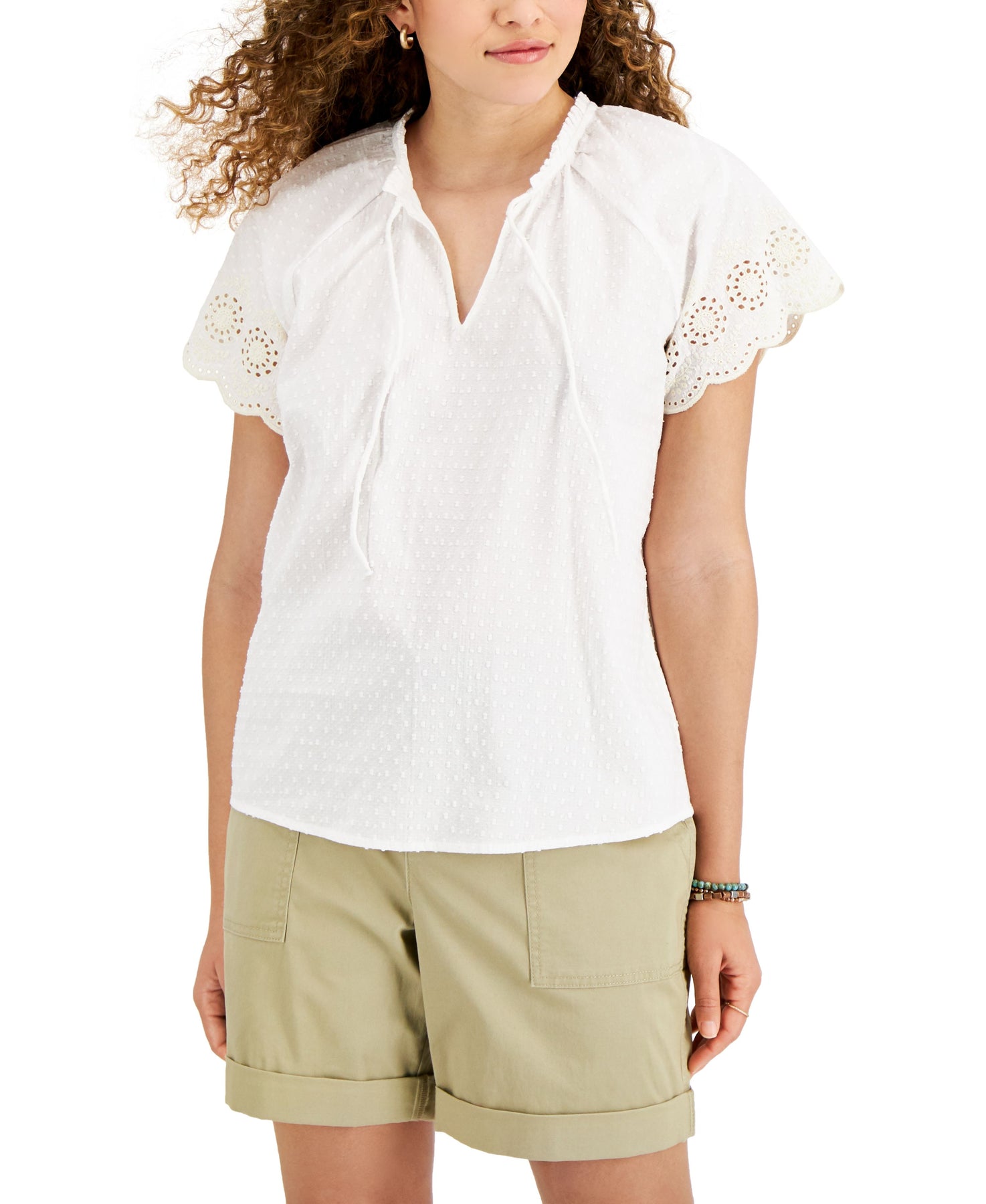 Style & Co Cotton Flutter Sleeve Peasant Top